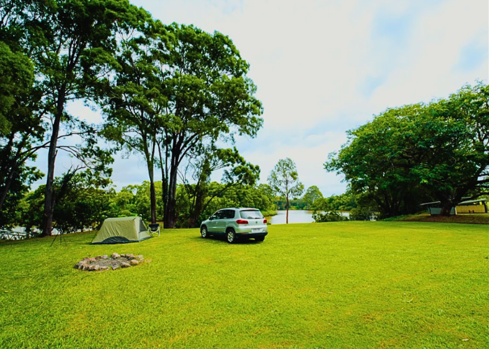 Above: This beautiful campsite 'Goldhayven Farm' is a private campground that overlooks the Logan River in Brisbane and can be booked on Hipcamp here.