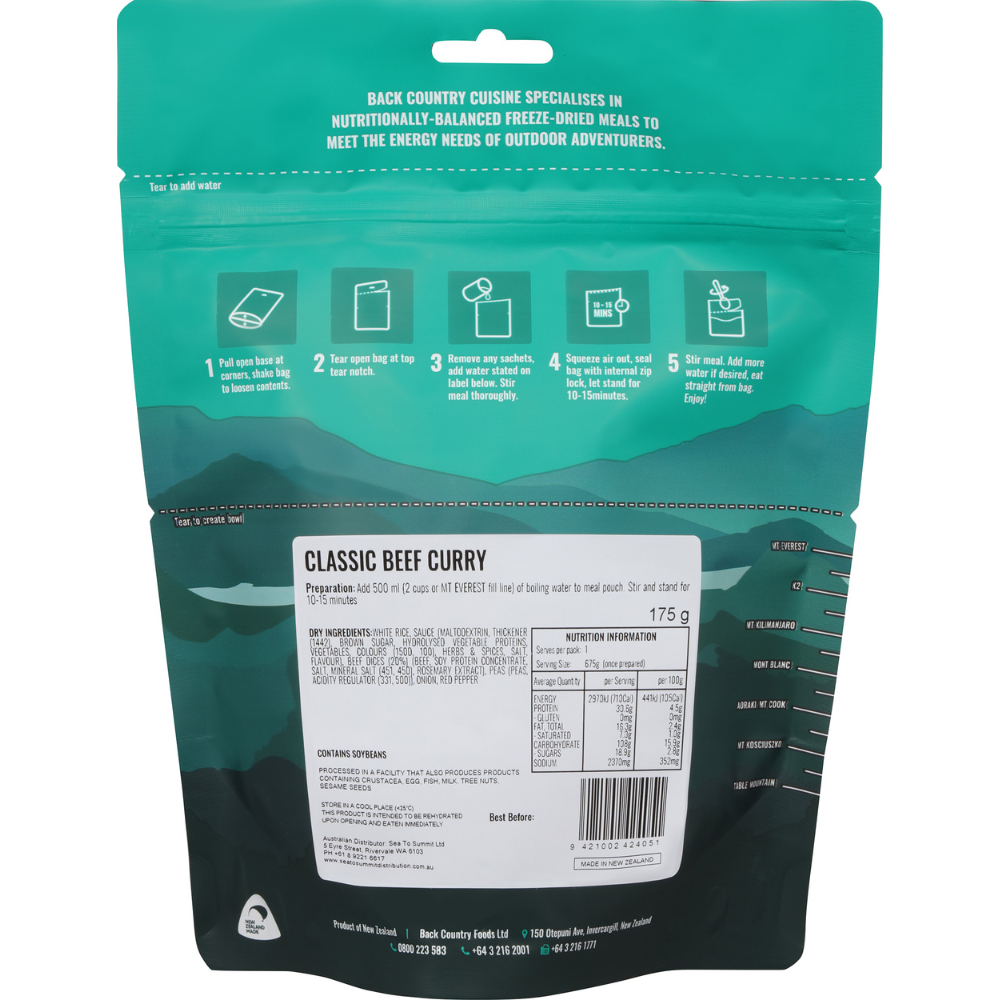 Back Country's range of meals, desserts, and meal compliments are easy to prepare by adding water to the convenient pack. Whether you're camping, hiking, mountain biking, fishing, yachting, or partaking in any great outdoor adventure, Back Country Cuisine is the light and easy solution to your meal planning.