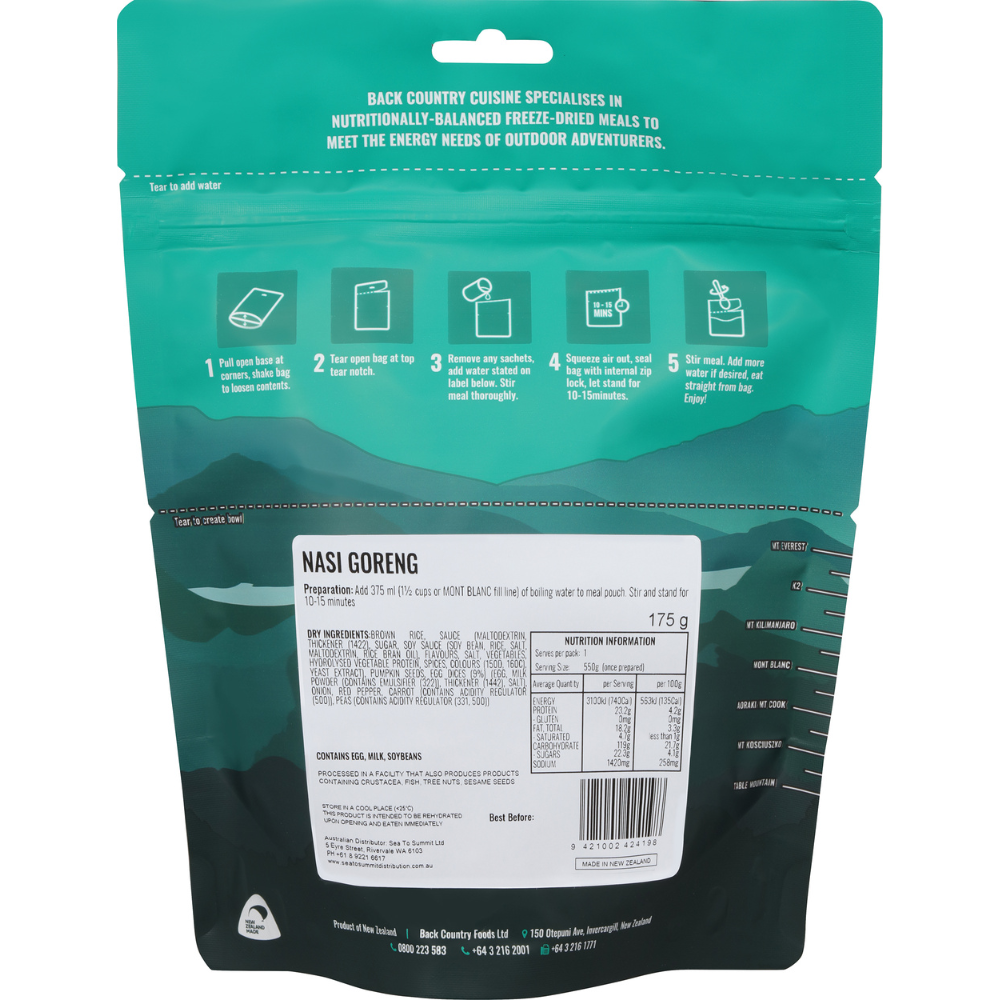 When on the All-Aussie Adventure, sourcing a simple yet tasty meal can be tough. Luckily, Back Country Cuisine already has a solution. The Back Country Cuisine Nasi Goreng Freeze Dri Food removes the hard work from preparing a meal. As a Dri Food, all it requires is boiled water a few minutes to cook until you're eating your best camping meal yet.