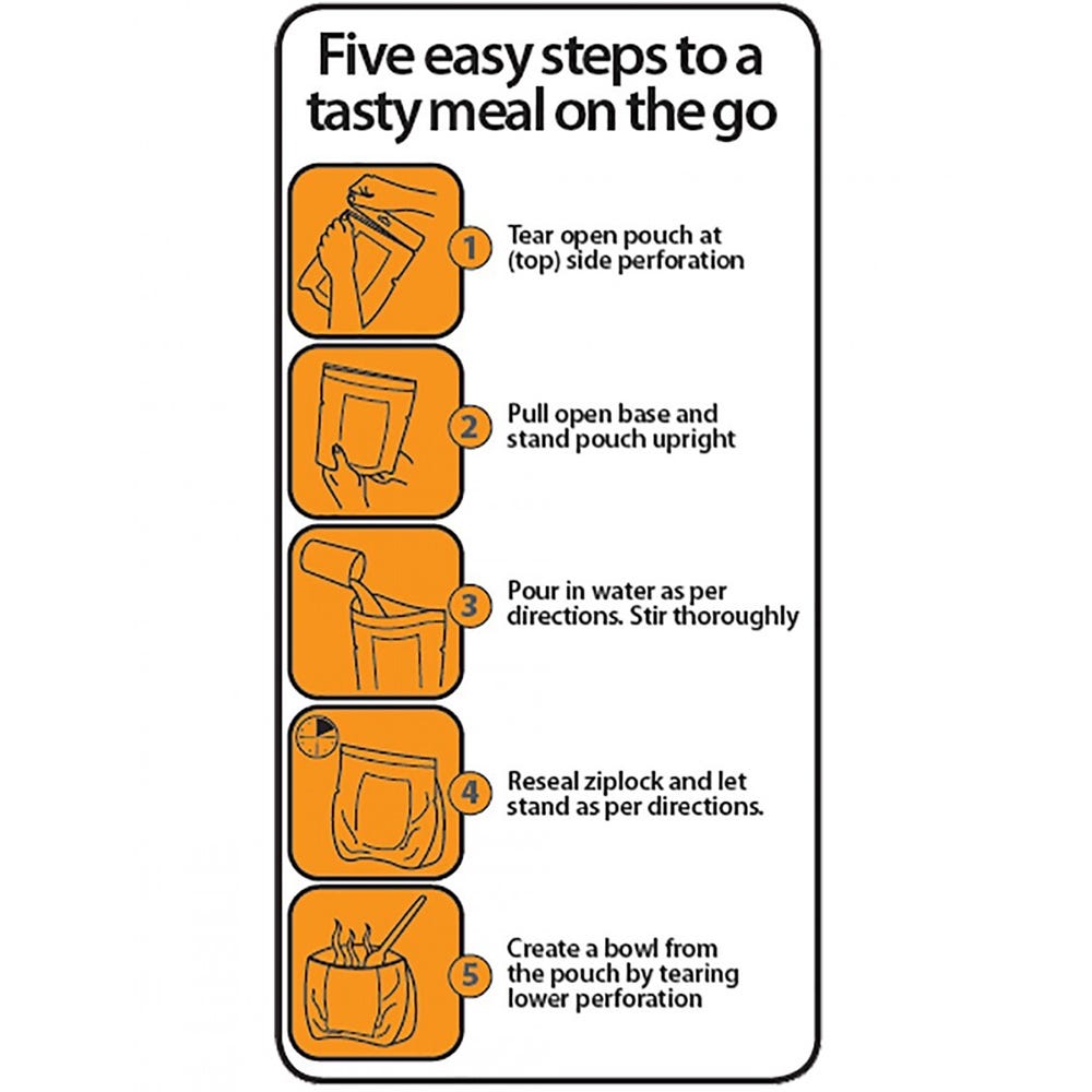 When on the All-Aussie Adventure, sourcing some fantastic breakfast can be tough. Lucky, Back Country Cuisine already has a solution. The Porridge Supreme Freeze Dri Food provides a great start to the day. Featuring wholesome pre-cooked porridge including dried fruit and raw sugar to sprinkle on top, camping breakfast has never been so simple. As a Dri Food, all it requires is boiled water a few minutes to cook until you're eating your best breakfast yet.