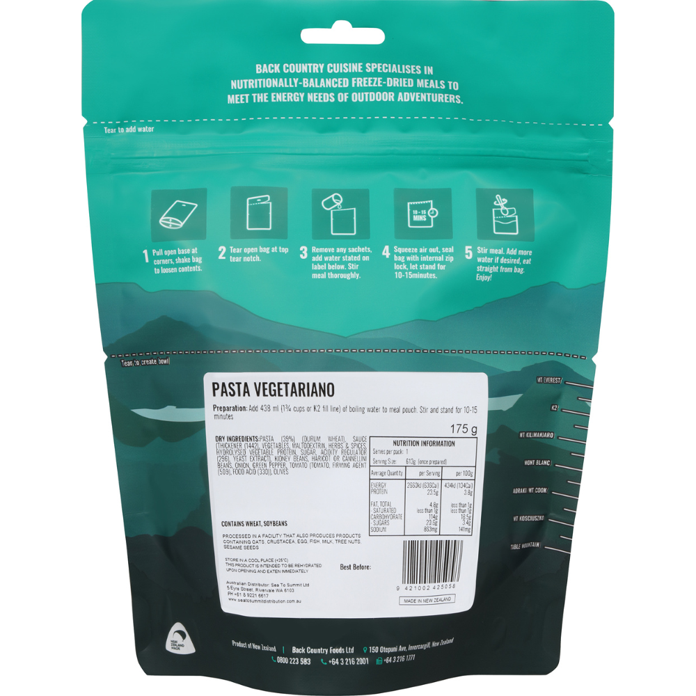 Pasta [durum wheat flour], sauce [Dehydrated Vegetables, Thickener (1442), maltodextrin (Maize), Herbs & Spices, Hydrolysed Vegetable Proteins (Maize, Soy), Sugar, Salt, Acidity Regulator (296), Yeast Extract, Vegetable Oil (Soy)], kidney beans, haricot beans, canola oil, tomato, olives, onion, green peppers.