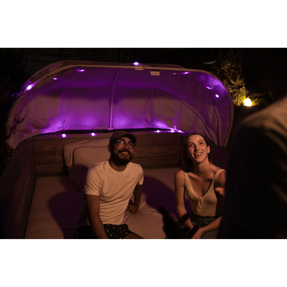 The Solar String 18' Colour is designed to instantly elevate your outdoor atmosphere, featuring 20 RGB LEDs housed within 10 durable, shatterproof bulbs strung along an 18-foot nylon-braided cord. Users can easily customise the mood with multiple lighting modes, including a seamless colour-cycle option or specific steady settings in Blue, Violet, Turquoise, Green, Pink, and Cool White. The unit is built for convenience, utilising a clever twist design that allows the string to retract completely into the housing for tangle-free storage and easy portability.