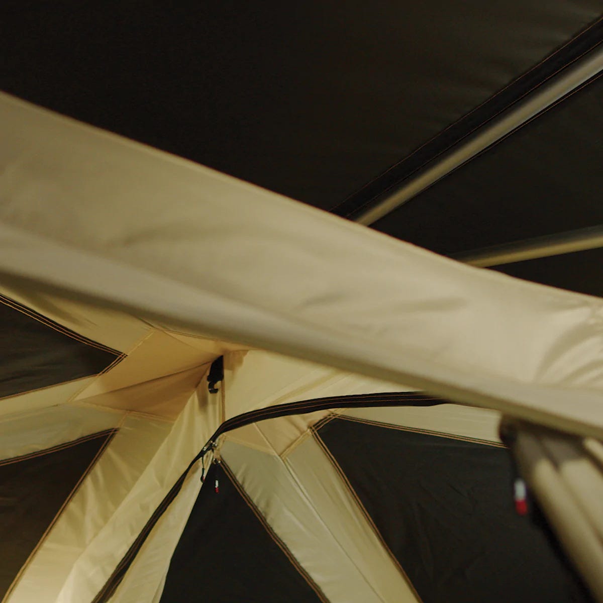 The new features found in the Turbo BLK Lite Cabin 450 Tent includes three layers of premium black PU-coating on the inner fly. The external layer works to reflect the light thanks to the neutral colour, while layers 2, 3 and 4 of the premium black PU-coating absorb the light to reduce heat. Initial testing has shown that the Turbo BLK range of tents are up to 10% cooler and up to 96% darker than the original Turbo Tent counterpart when tested in like conditions.
