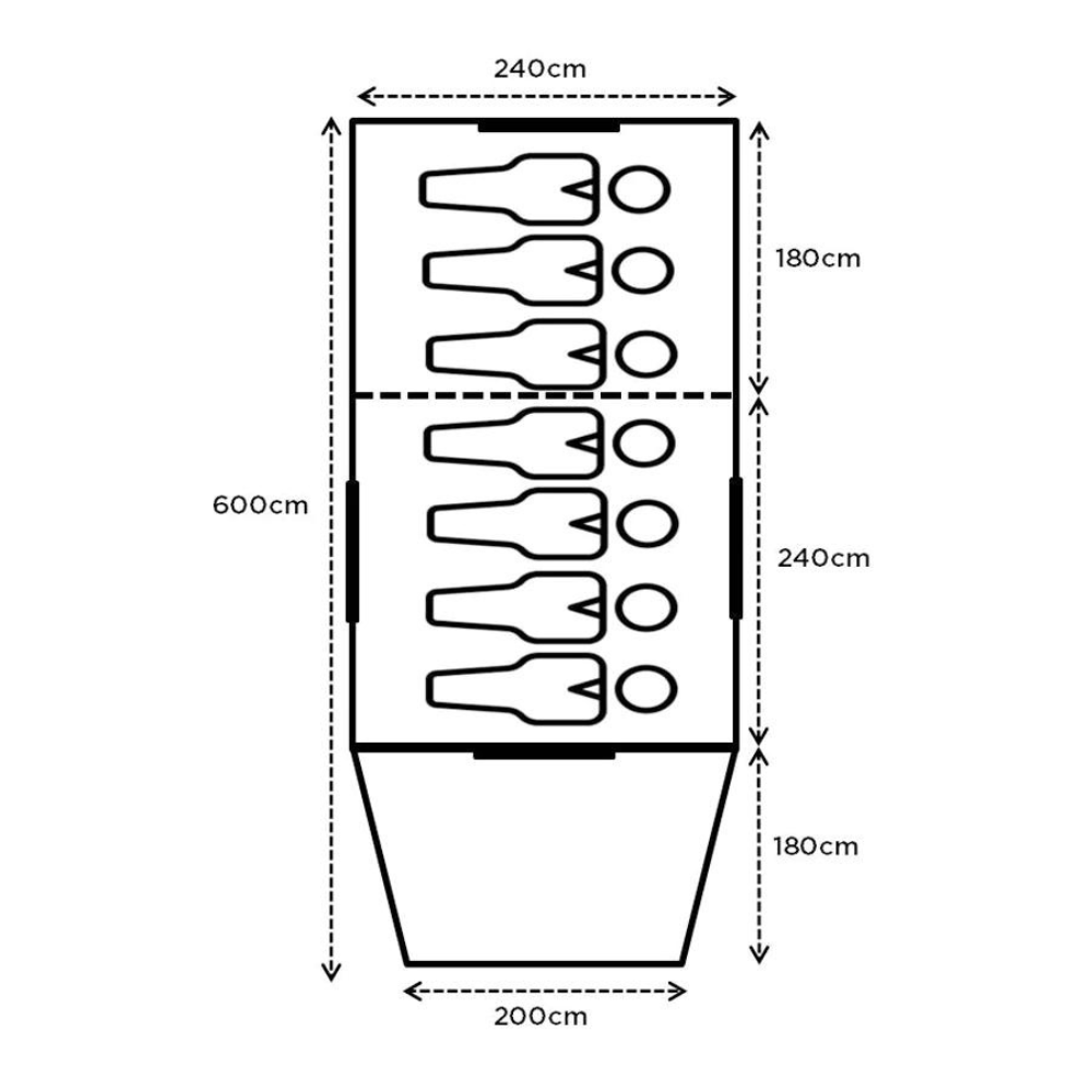 The Turbo Lite Plus has a curtain divider allowing the tent to be divided into two rooms, New 3 pole awning can remain erected in all weather conditions thanks to the centre ridge pole enabling unprecedented water shedding capabilities. Combine with optional Side and Front Panels to fully enclose your awning. Large front door, roof vents and gusseted side windows for excellent ventilation in all weather conditions and zippered guy rope pockets to keep guy ropes tidy. Perfect for those who want a quality no fuss setup tent. The rear section can be curtained off to create a private bedroom area or left open for a larger single room.