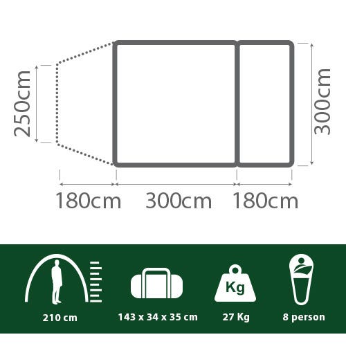 A curtain divider allows the tent to be divided into two rooms, alternatively it can be rolled away to the sides to give you one big space. Perfect for those who want a quality no fuss setup tent.