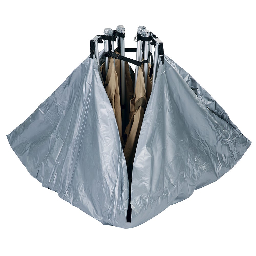 New 3 pole awning can remain erected in all weather conditions thanks to the centre ridge pole enabling unprecedented water shedding capabilities. Large front door, roof vents and gusseted side windows for excellent ventilation in all weather conditions and zippered guy rope pockets to keep guy ropes tidy.