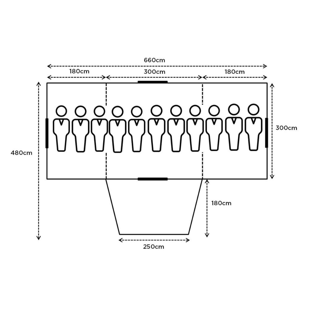 Dimensions: 660(180+300+180)x300x210cm