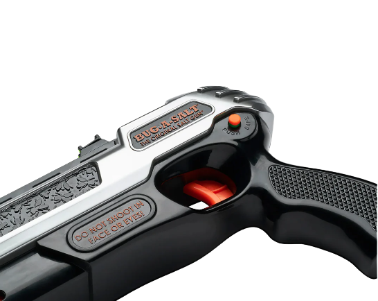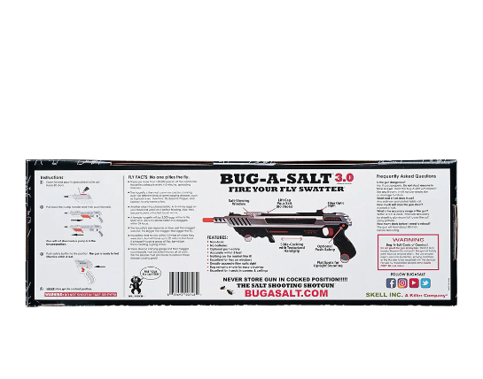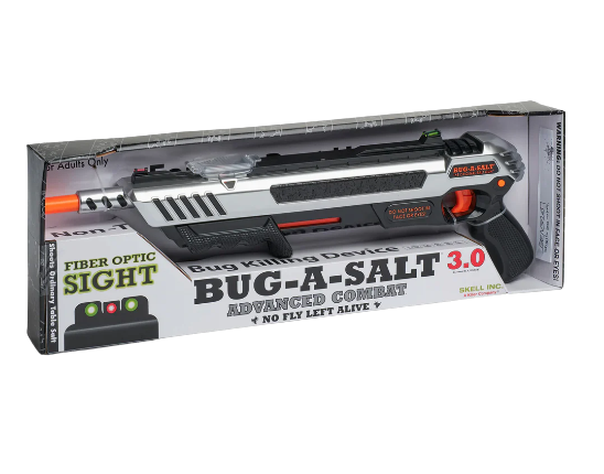 The BUG-A-SALT uses ordinary table salt to Blast Away Flies in an environmentally friendly way. With no harsh chemicals or Toxic Fly Spray. However, we must warn that instead of leaving flies whole for easy cleanup, it may splatter them.
