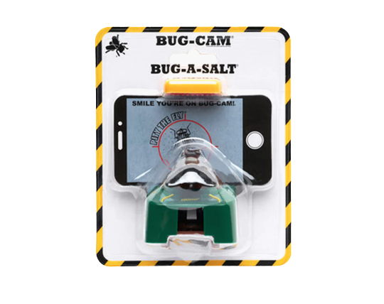 No tools required, easy to install! Flip the giant fly perched on top of poop to lock BUG-CAM into place on top of your BUG-A-SALT. Insert phone, ready to GO!