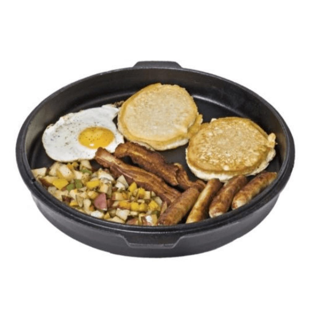Cast iron Dutch ovens are known for making some of the most delicious meals, from slow roasted meats to your favorite desserts. When cooking with this deluxe nine and one-third quart, 12รขโฌย (30cm) Dutch oven your menu will expand because the lid doubles as a full size skillet. Simply turn the lid over to cook eggs, bacon or pancakes, then replace the lid and start cooking your favorite potatoes for the next meal.