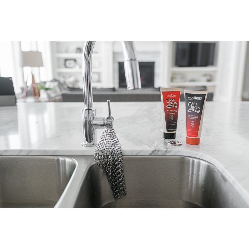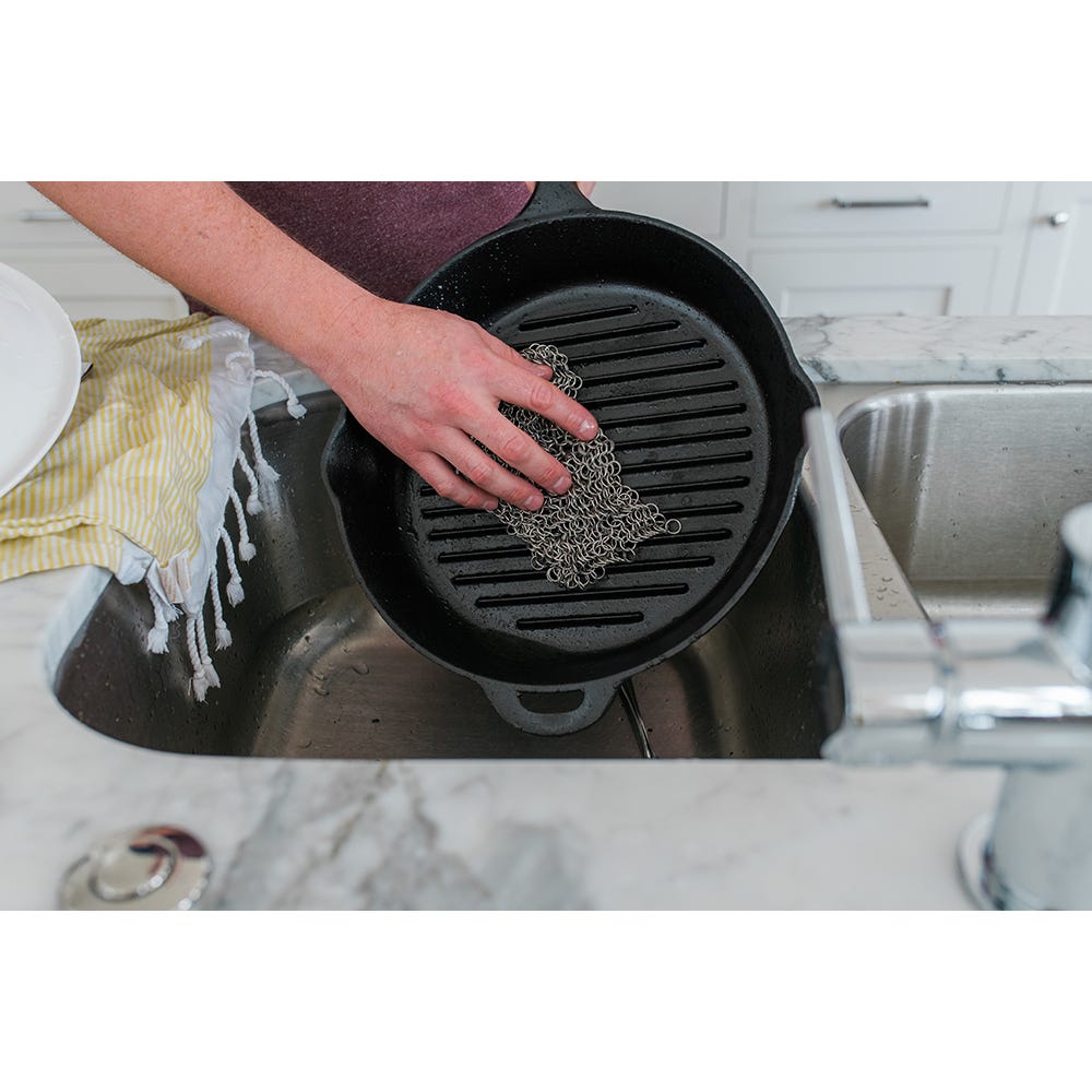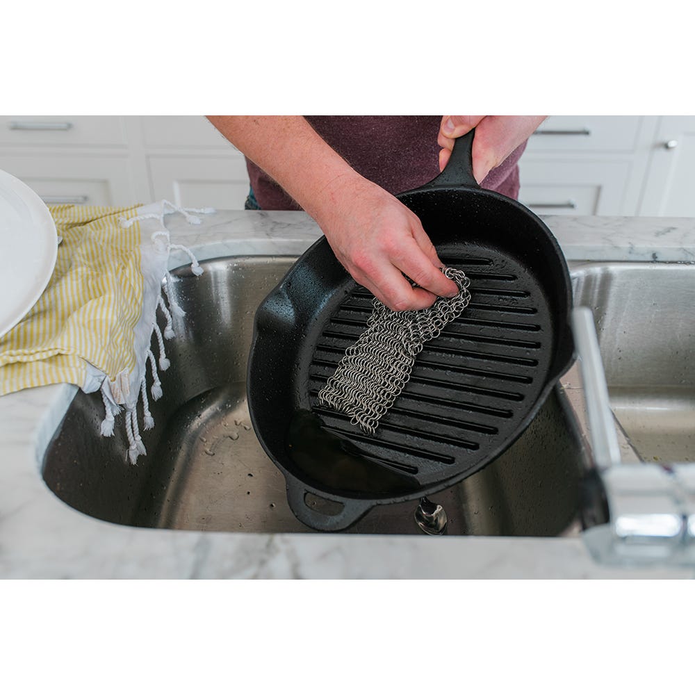 Make cleaning your cast iron, griddles and tough steel a breeze with this heavy-duty chainmail scrubber.