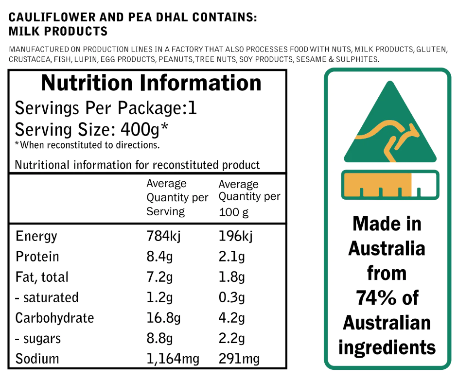 - MADE IN AUSTRALIA FROM 74% AUSTRALIAN INGREDIENTS