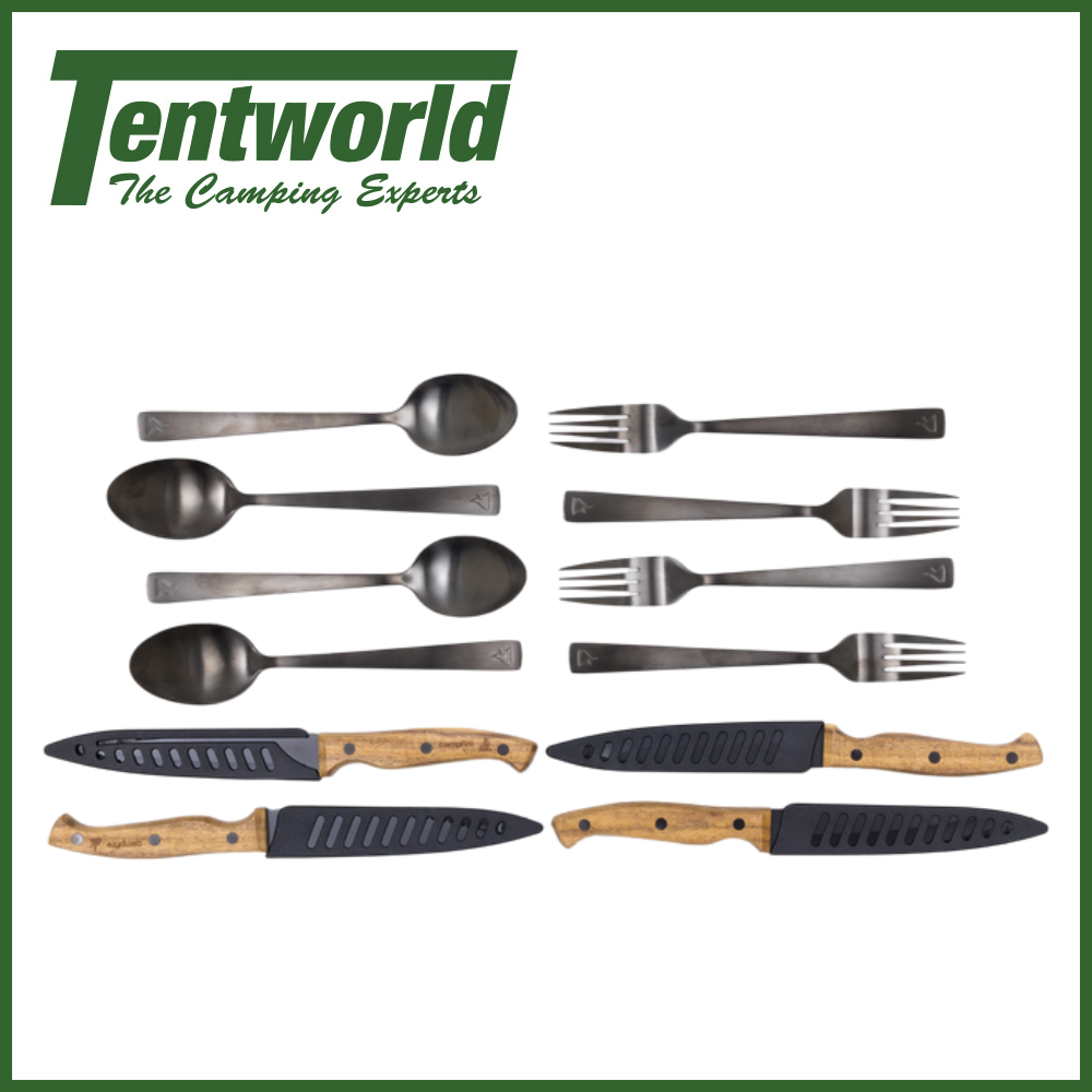 4 x Forks, 4 x Knives, 4 x Spoons and a roll-up storage bag