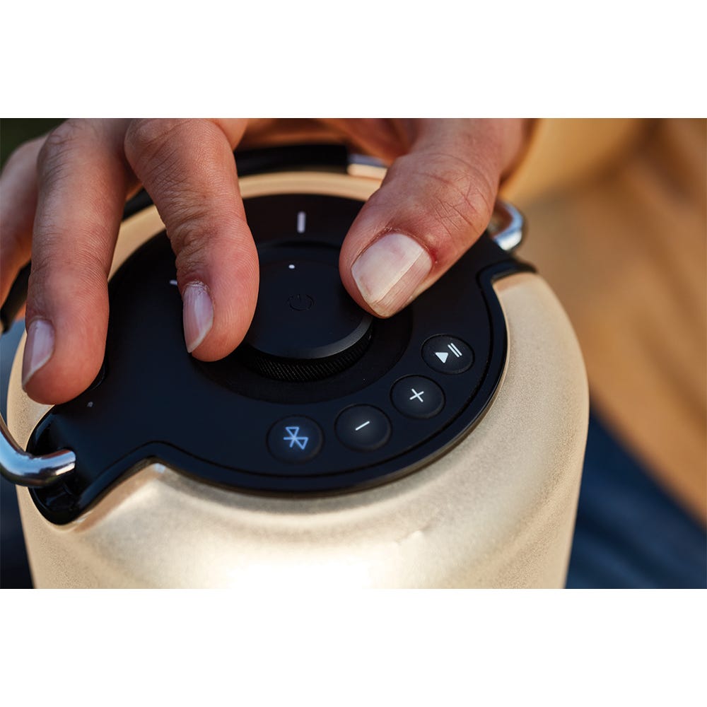 Coming with 360° LED light capabilities of up to 400 Lumens, this unit offers control buttons on top of the lantern for both the lighting and music. This lantern is powered by a rechargeable Lithium-Ion battery and weighs approximately 1kg.