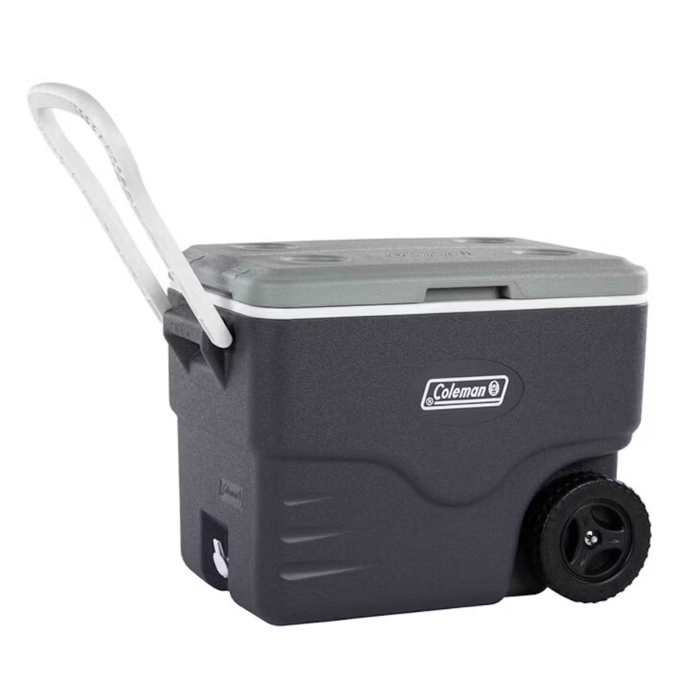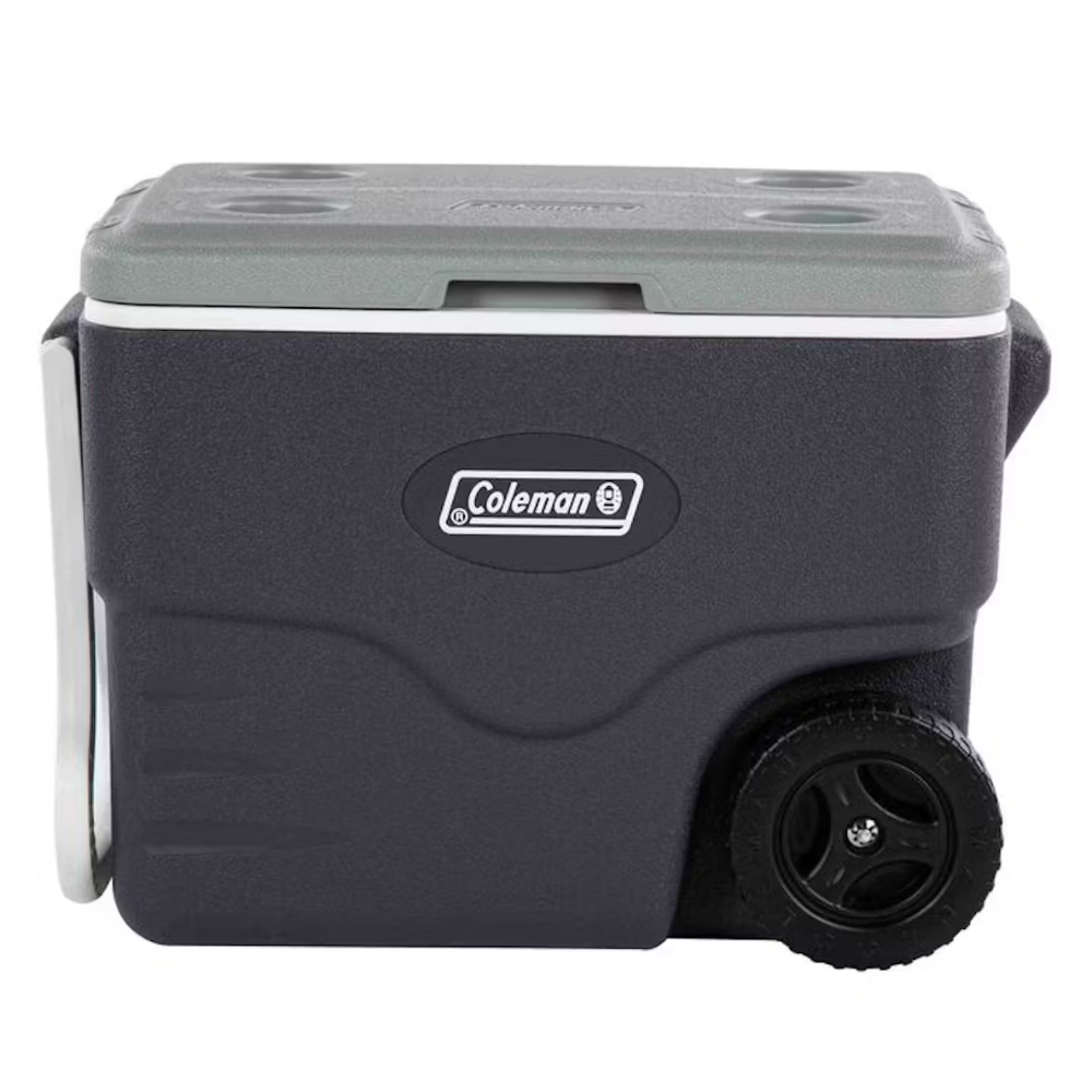 Designed for effortless transport, the cooler features rugged wheels and a convenient pull handle, so moving it across grass, sand, or pavement is simple. The lid also includes four molded cup holders, making it a handy tabletop wherever you go. Durable, practical, and ready for adventure, it’s the ultimate outdoor companion.