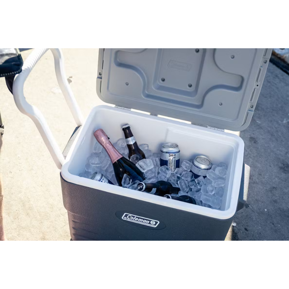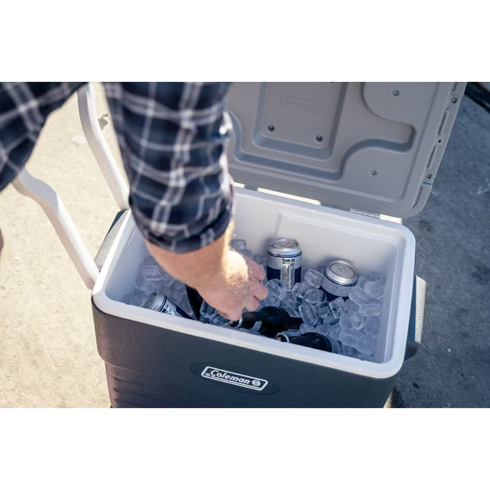 Keep your food and drinks perfectly chilled on all your adventures with the Coleman 38L Wheeled Hard Cooler. With ThermOzone™ foam insulation, it retains ice for up to 3 days, making it ideal for camping trips, beach days, or backyard picnics. The spacious 38-liter capacity holds plenty of snacks and beverages, while the leak-resistant lid ensures everything stays secure.