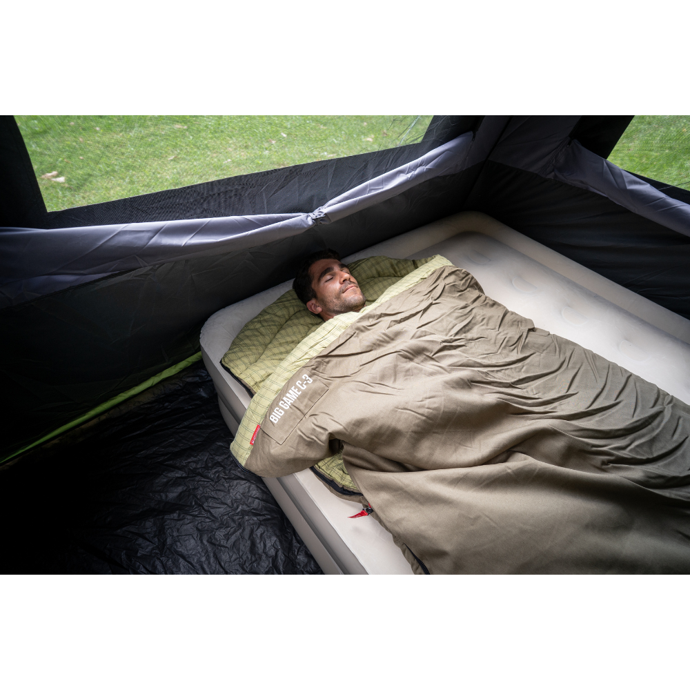 Chase winter adventures with serious warmth and space to stretch out. The Coleman Big Game C-6 Hooded Sleeping Bag is built for comfort in sub-zero conditions, rated to -6°C and designed with extra legroom for taller campers. With Coletherm hollow polyester insulation and Thermolock draft tubes, it keeps you warm even in damp, chilly environments. The full-cover design eliminates cold spots, and a cosy flannel layer adds a luxurious touch.