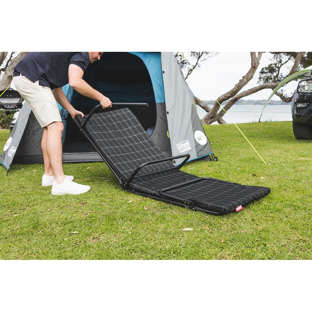 The Coleman Big Sky Compact Stretcher Bed is your comfy bed away from home or for extra guests! This stretcher bed has a bed-like coil suspension and has a comfortable 4.5cm thick covered foam mat. The silicone grips under the mat hold it in place if you move whilst the steel frame ensures the unit is kept stable during use. Rated to hold up to a great 125kg, the Coleman Big Sky Compact Stretcher is perfect for your next adventure!