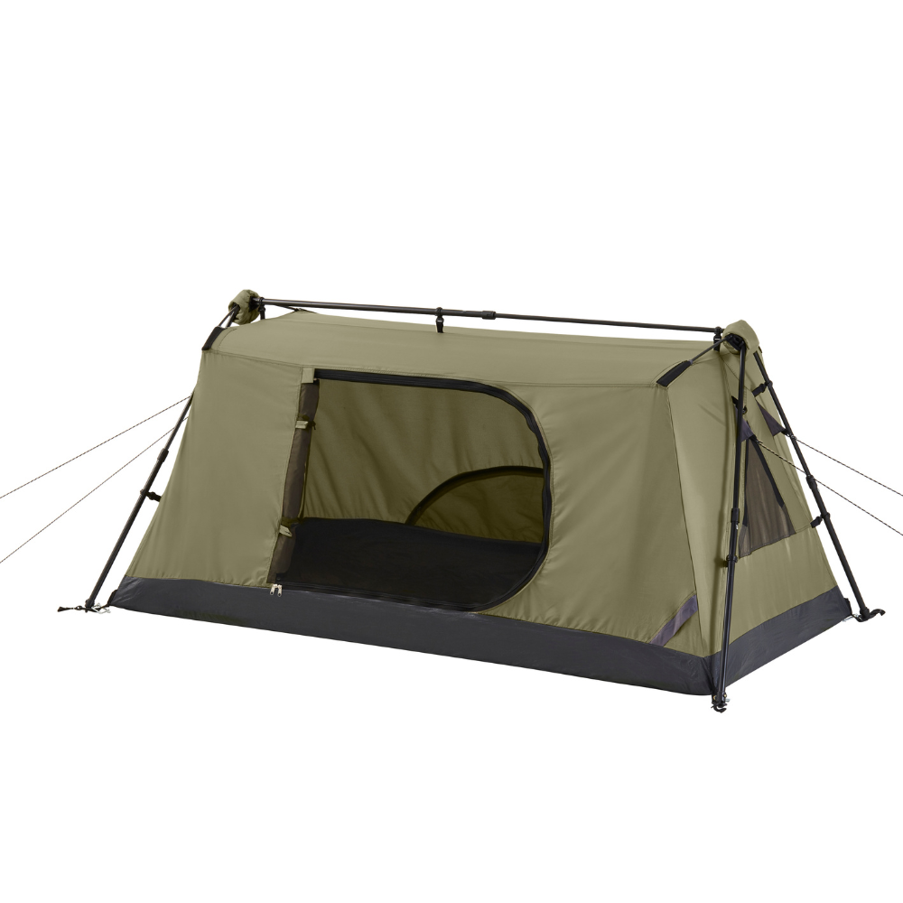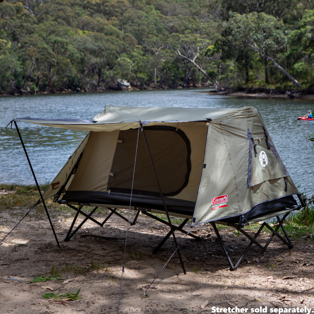 The Coleman Swagger instant up 1 Person Tent is much like a traditional swag, it is simple set up, easy to use and always dependable. It's compact, and easy to store. Featuring a dual instant spine hub, the spring loaded lateral fibreglass torsion poles give you more headroom than traditional swags. Featuring 150 Denier polyester for both the tent and fly, with a waterhead rating of 1500mm and a 14 x 14 PE Tarp floor, it's also tough enough for most Australian conditions.