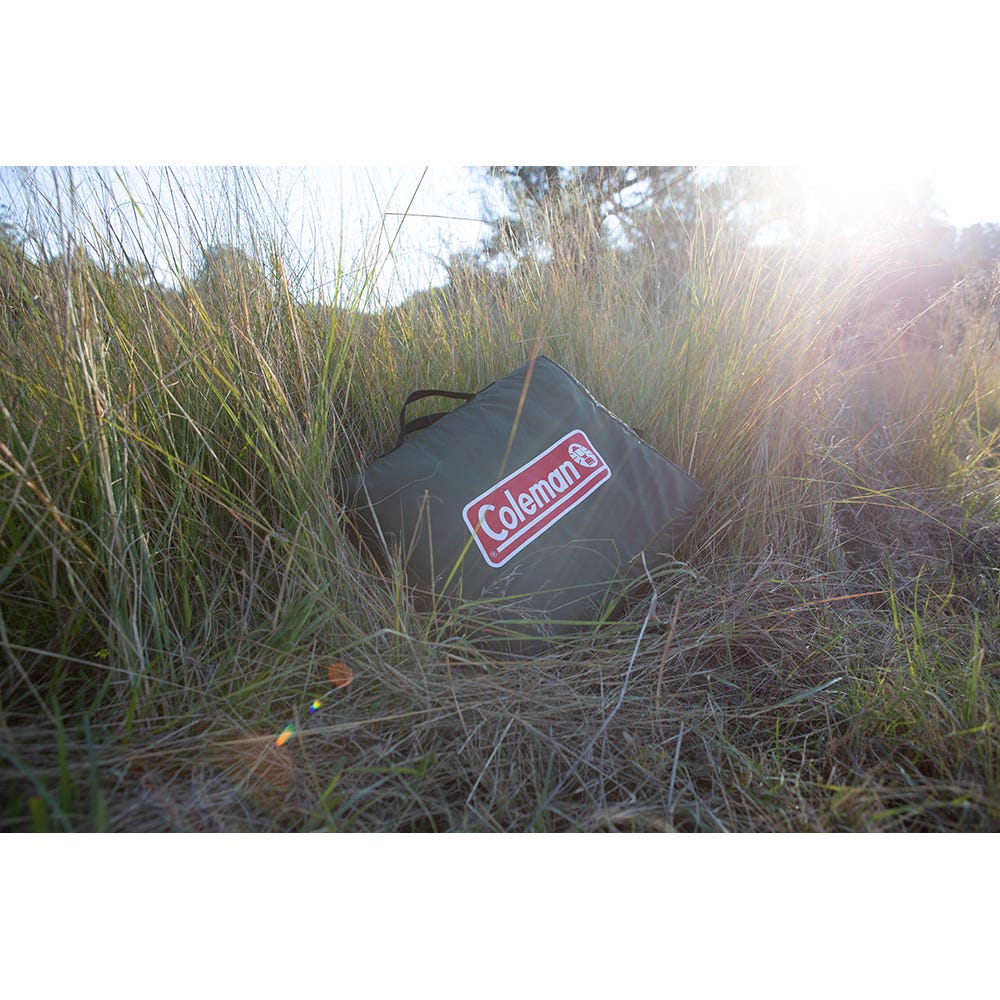 The ground sheet is made from a heavier-duty, shade-cloth type material which is easy to fold and pack away at the end of your outing. Its UltraMesh design allows the grass underneath to breathe and lets dirt, sand or grit to fall through to the ground below before it ends up inside your bedding. It also ensures that the tent floor won’t start pooling with water if it rains. In some unpredictable situations it can even serve an alternate use as an emergency wind breaker or hail shield.