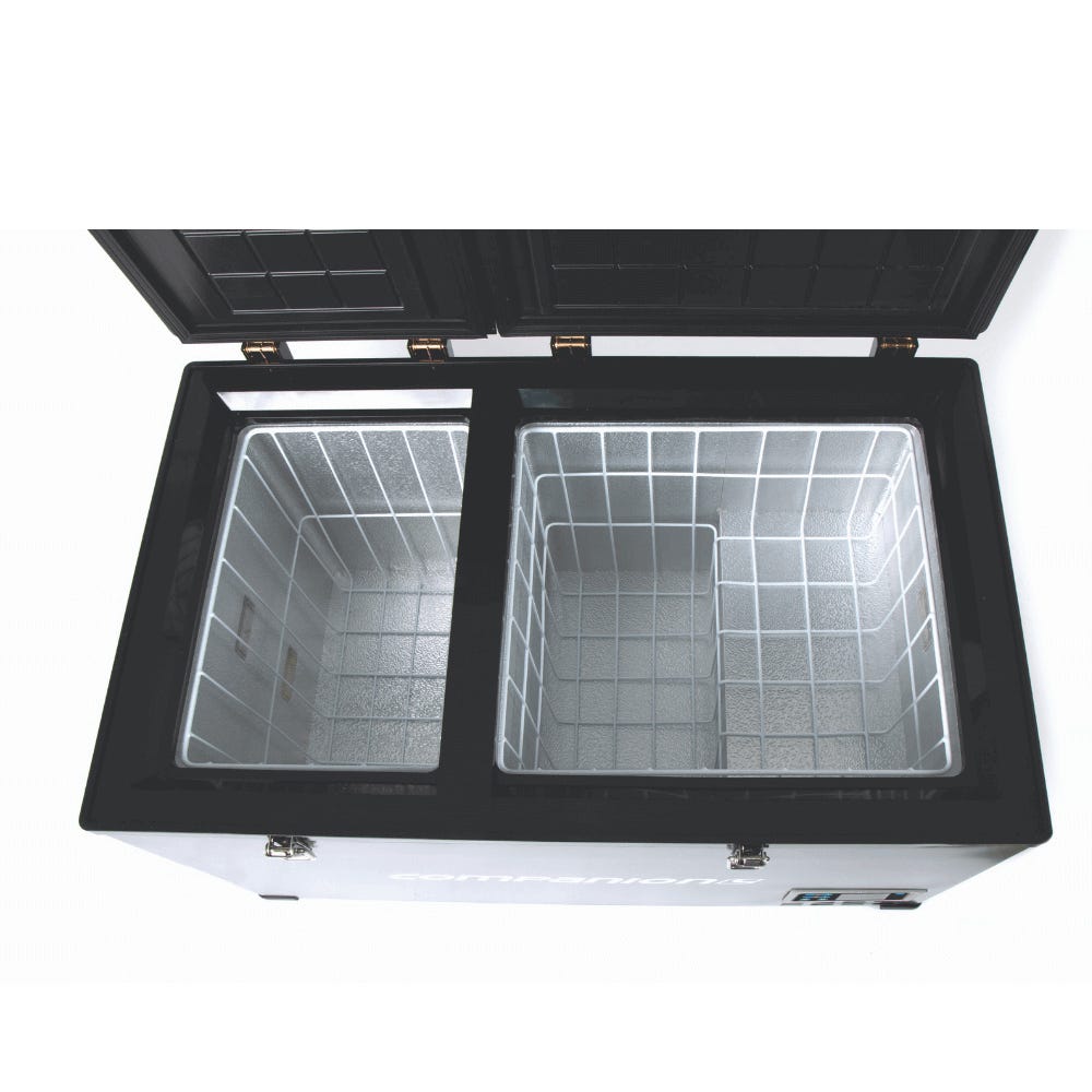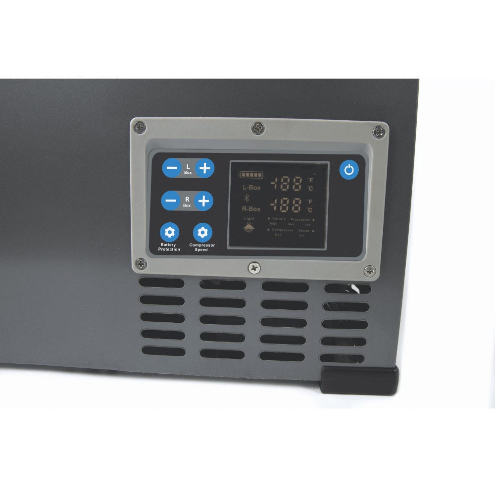 Every fridge/freezer in the Metal range features a digital control panel and gets its cooling power from a highly efficient LG compressor that only uses 2.5 amps per hour and is capable of maintaining a steady temperature. Whether the unit runs as a fridge or freezer is decided by your temperature selection on the control panel, and then the electronic temperature control does the rest. This panel also controls the three stage monitor so you can keep an eye on that with ease. Wrapped in the same tough metal exterior as the single zone range, the Dual Zone model also features independent lids to ensure opening one compartment doesn't reduce the cold in the other.