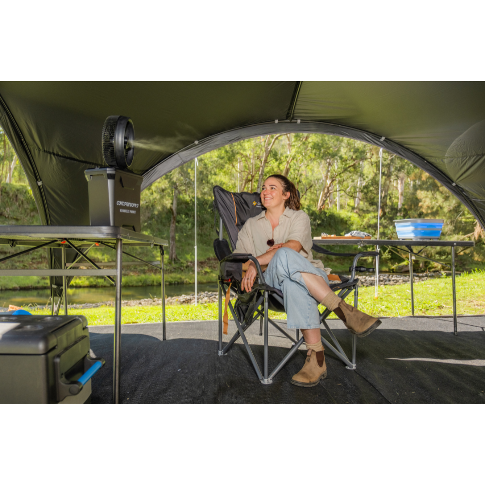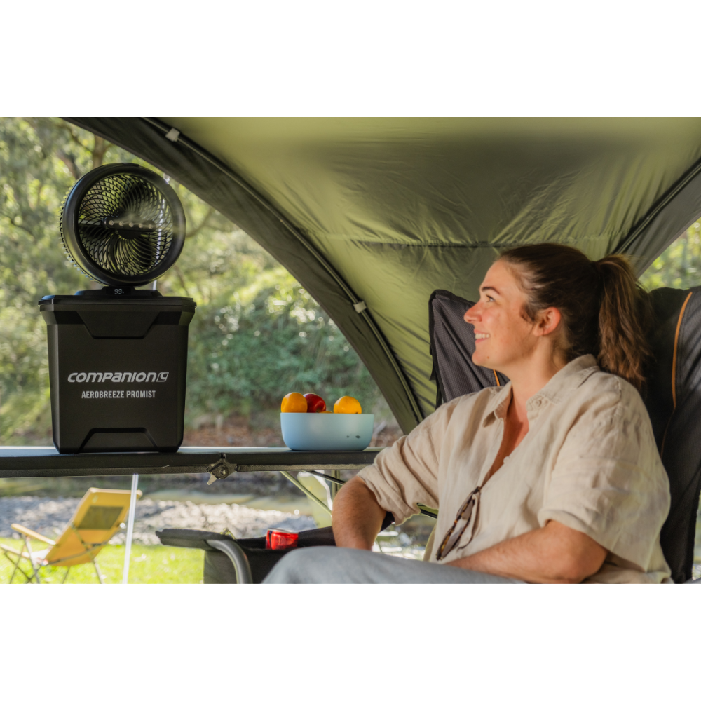 Packed with convenience, the Aerobreeze ProMist Fan features direct controls on the unit, a handy remote, and a timer function of up to 8 hours. The massive 20,000mAh rechargeable battery delivers long-lasting use, while its rugged ABS plastic construction ensures durability. For pack-down, the fan flips upside down and nests inside the tank, complete with a carry handle for easy transport. It’s the ultimate summer companion for reliable, portable cooling.