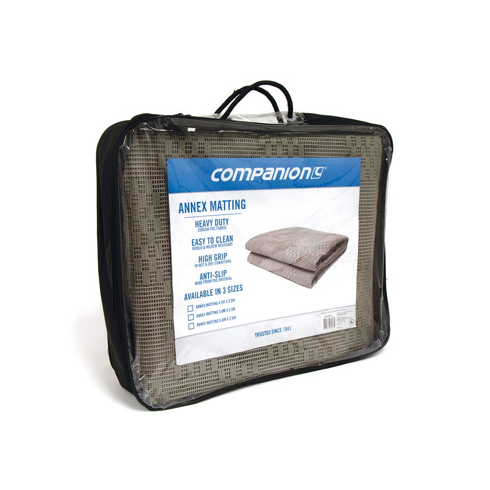 The Companion Annex Matting 2.5m x 6m is made from a strong anti-slip PVC material which is great for flooring under gazebos, annexs and awnings.