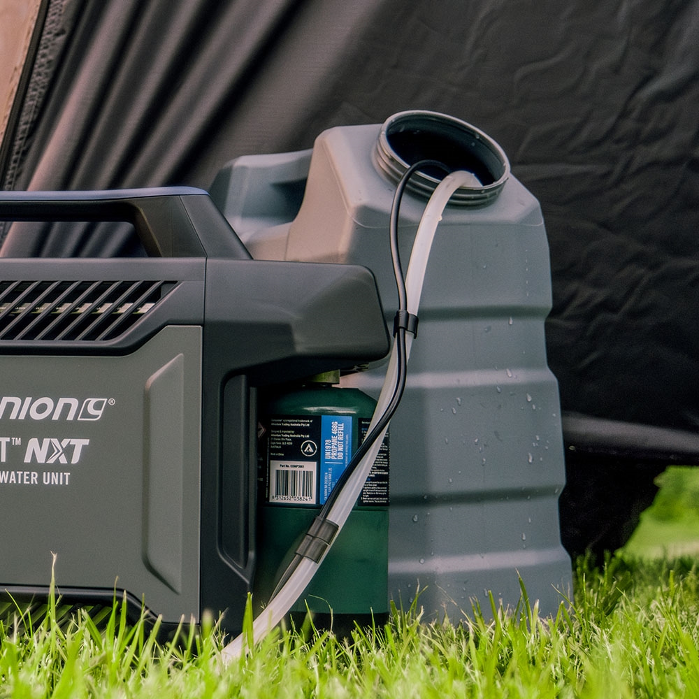 Take outdoor comfort to the next level with the Aquaheat NXT Shower Pump and Hose by Companion. Designed with a slim profile to fit most jerry cans, this clever unit delivers a powerful and consistent water flow of up to 2 litres per minute—perfect for refreshing showers wherever you roam.