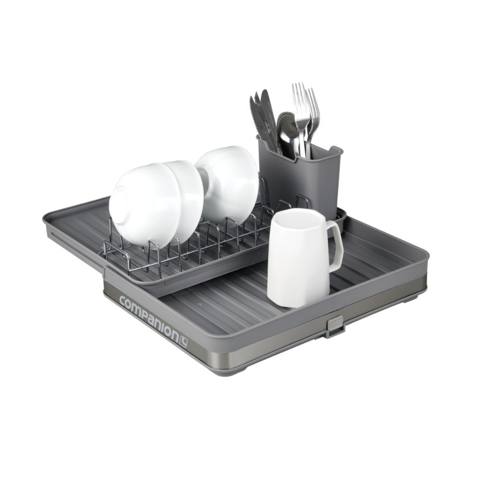 This space saving , expanadable rack with a cutlery and dish holder will keeo your wet dishes organised. It has been designed to be adjustable to fit compact or spacious areas.