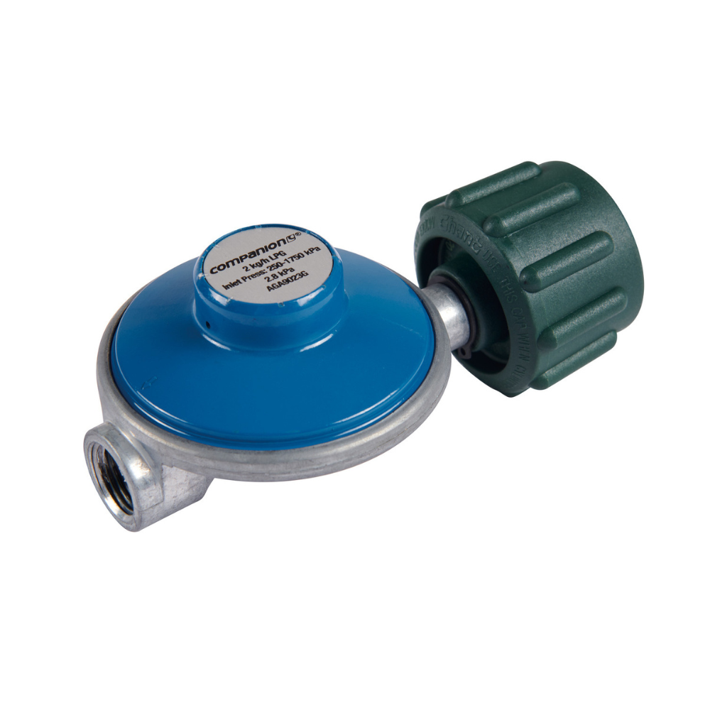 The Companion low-pressure LCC27 regulator is perfect for BBQ applications and 3-way portable refrigerators. Its high-quality design ensures a safe and reliable connection to your LCC27 gas bottle, making it ideal for various outdoor cooking and refrigeration needs.