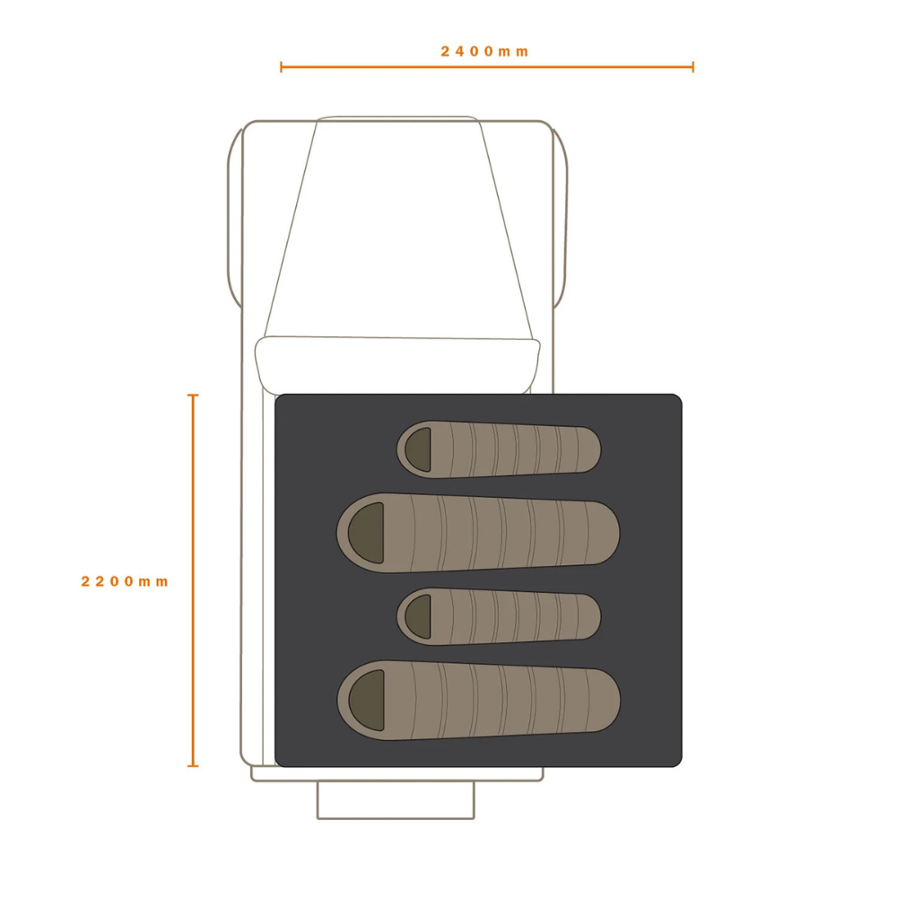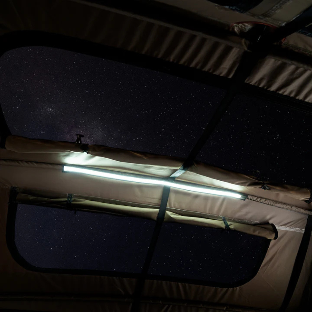 Designed for campers who love to explore, the Basecamp 2200 comes equipped with an integrated LED strip, including an amber light setting to keep bugs at bay, while fine insect mesh on all windows ensures maximum ventilation without unwanted pests. The twin panoramic sky windows provide stunning views of the night sky and your surroundings, allowing you to stay immersed in nature from the comfort of your tent.