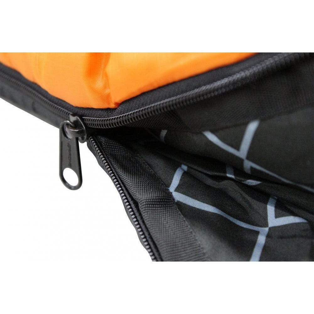 The Darche Cold Mountain 1100 -12C Sleeping Bag - Black/Orange is the perfect sleeping bag for your next outdoor adventure! This large box-shaped bag is specifically designed for those who prefer extra room and provides you with the most comfortable sleep to suit Australia's rugged conditions. This purpose-built sleeping bag is also designed to fit into Darche's range of swags and rooftop tents! The Cold Mountain is perfect for the tourer, adventurer, fisherman and all-around outdoor enthusiast.