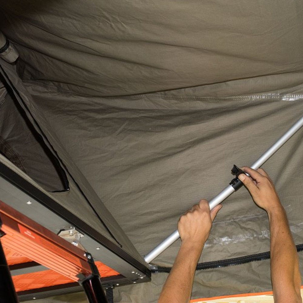 Built tough for the rugged Australian landscape, the Hi-View RTT can handle whatever you can throw at it - wind, rain and the harsh Australian sun are no bother for this little gem. Designed for maximum ventilation, the extra large zippered mesh windows on both sides provide exceptional airflow in warm weather without compromising on storm and sun protection. The adjustable fly and built-in air vents will see you through the rainy weather, preventing condensation and providing even more airflow, while the gusseted window awnings offer you shade on sunny days.