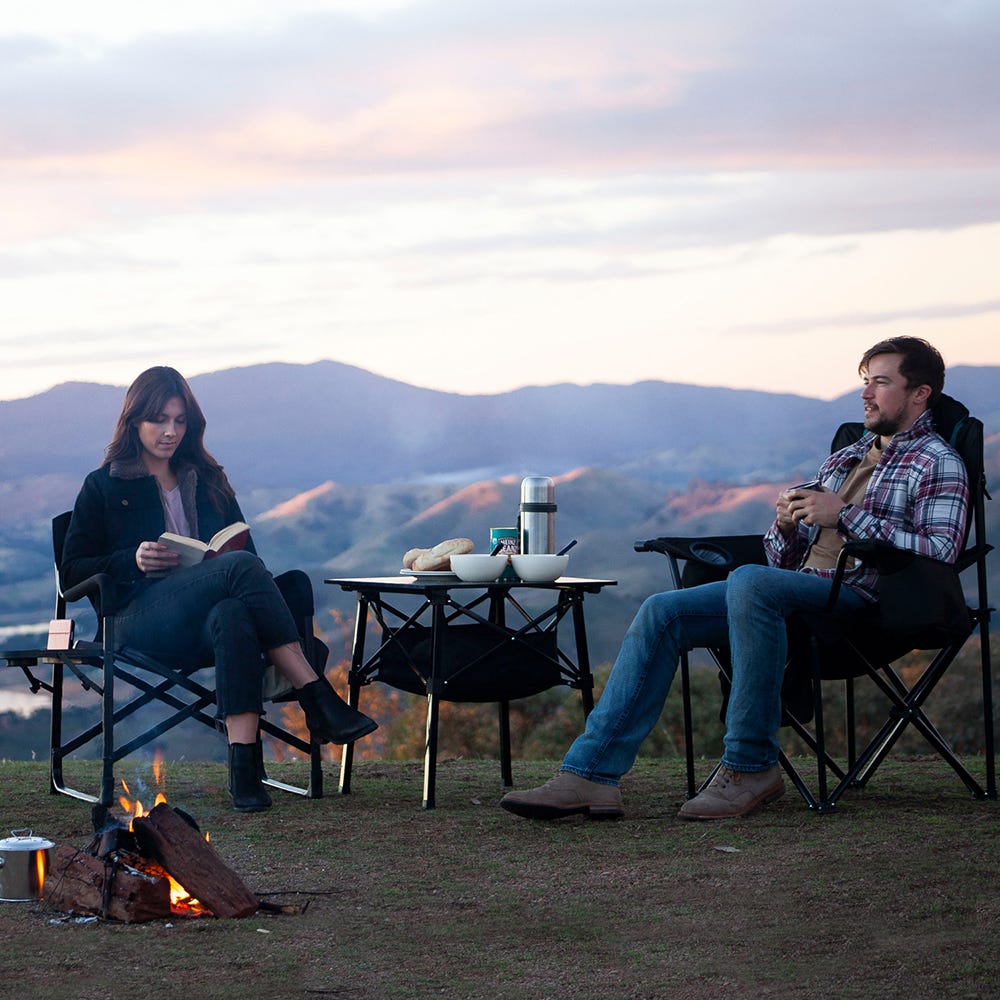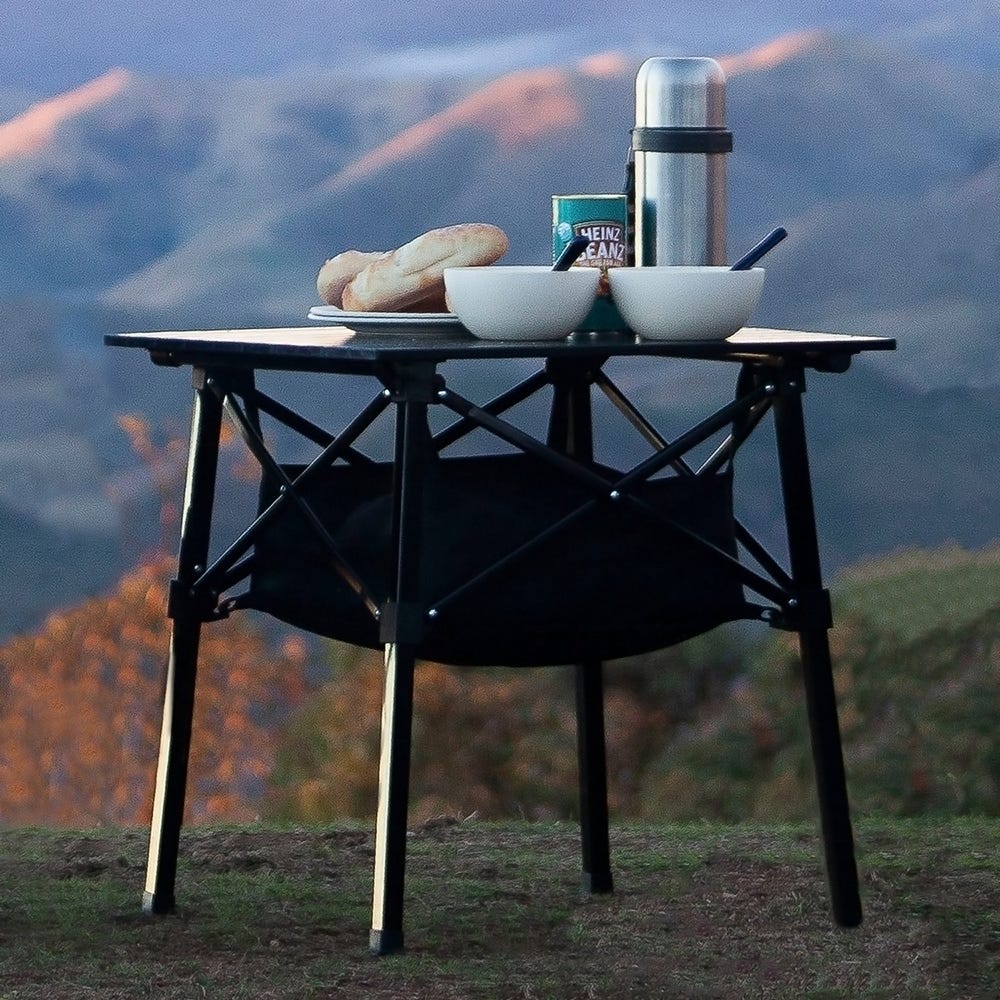 The small size is perfect for small meals, or playing board games. It even features a super handy shelf underneath to keep your gear tidy and out of the way.
