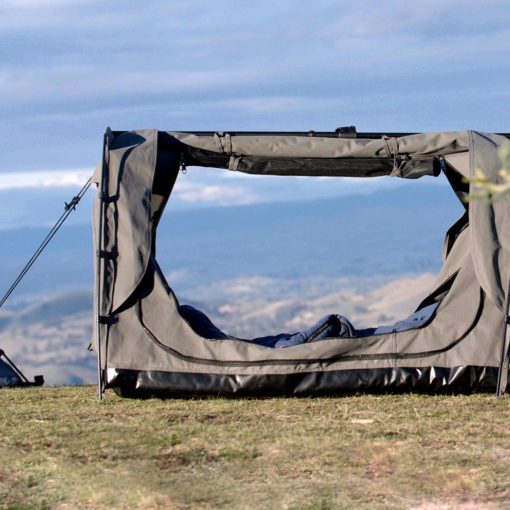 Bucket flooring to keep you dry, as well as tonnes of windows so you can adjust the ventilation to suit your needs. With all these windows, this swag has you covered for every climate, allowing the breeze to flow through when you're in tropical QLD and holding in all the heat next time you're in chilly Tasmania.