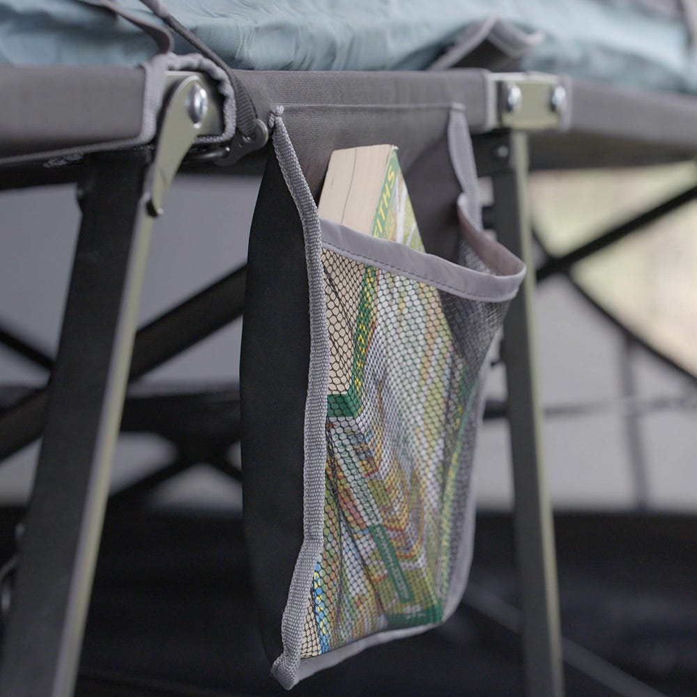 Drift off in complete comfort with the DARCHE® Kozi Series Stretcher. Featuring our unique, soft-touch Pillow Pocket™ which holds your pillow securely in place for a comfortable night’s sleep. The fast folding frame sets up in seconds and the compact pack size will fit easily into your vehicle, making it the perfect portable stretcher for your next adventure. It features a mesh storage shelf underneath and a pocket for your valuables, book or torch so they're within reach when you need them.