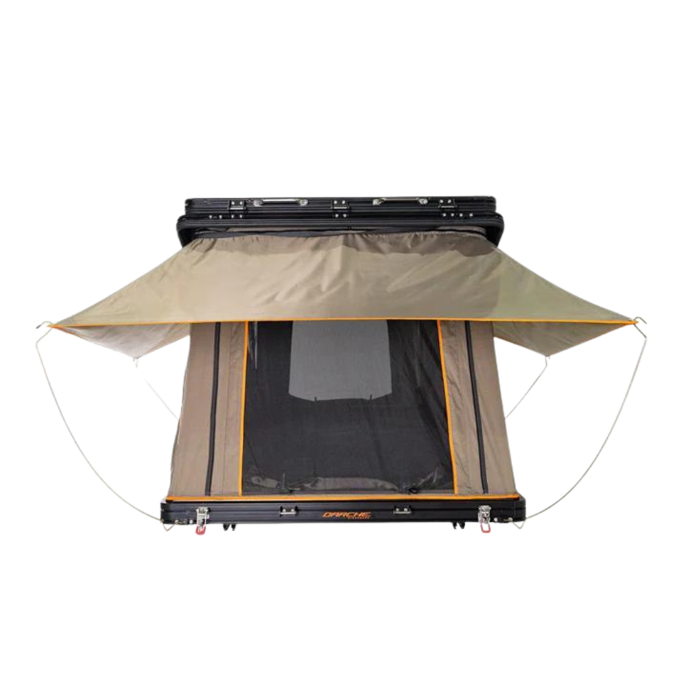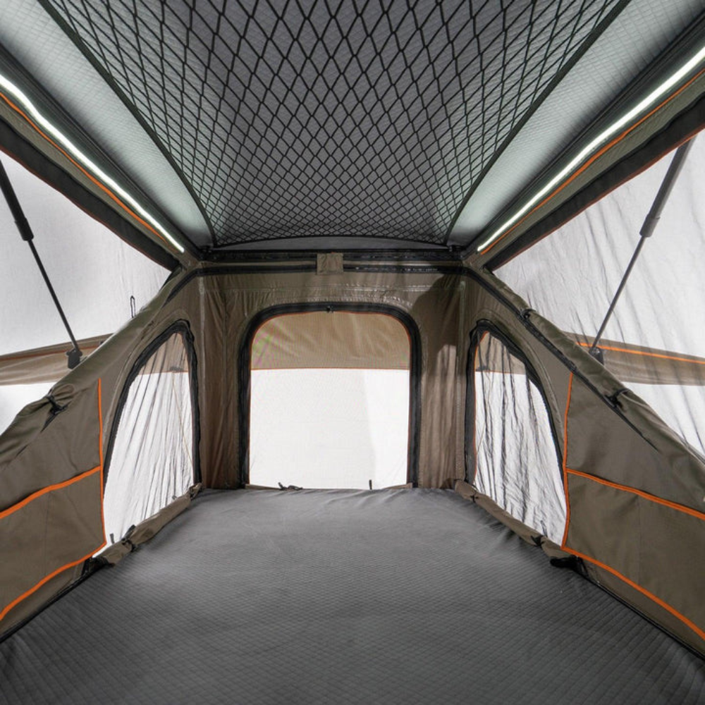 The tent body, made from premium 280gsm Ripstop Recycled Polyester Oxford, boasts a 3000mm waterhead rating. High-profile automotive rubber weather seals and internal seam sealing keep you dry in rainy conditions.