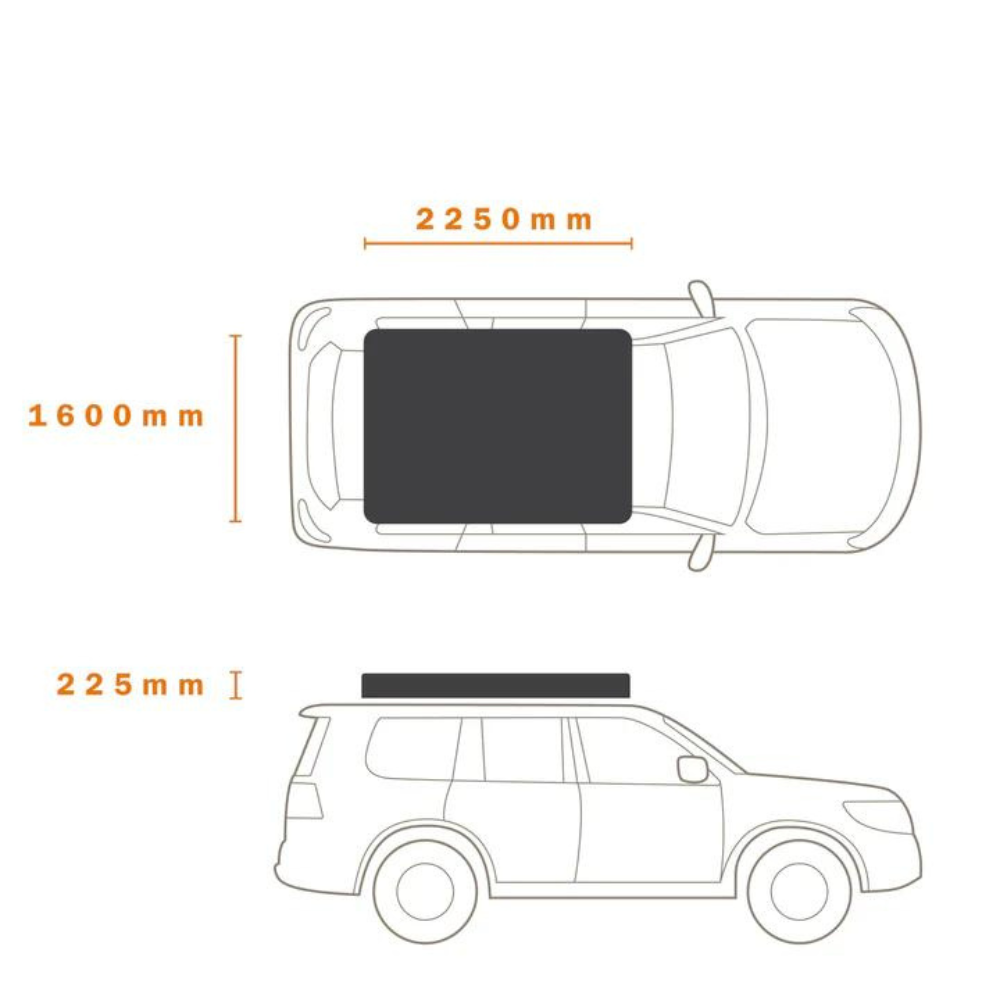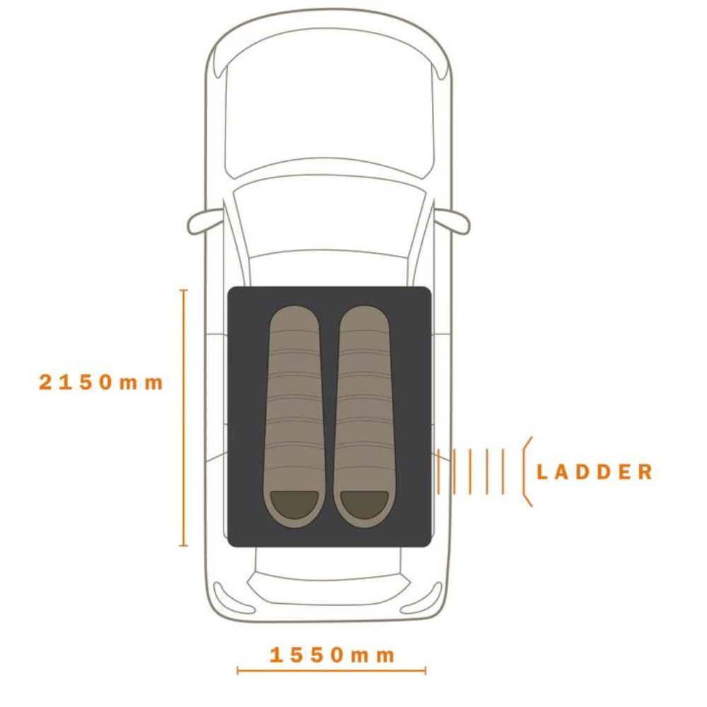 With veratile mounting the Ridgeback HighRize Roof Top Tent is compatible with most flat roof racks or roof rail systems (roof rails and awning bracket kits sold separately).