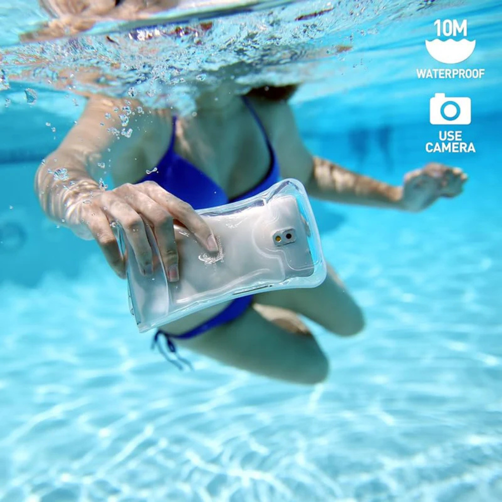 Protect your phone while you dive into adventure with the DiCAPac Waterproof Smartphone Bag for Large Phones. Perfect for beach days, snorkelling, kayaking or unexpected rain, this lightweight waterproof pouch keeps your device dry without sacrificing usability. Its clear, touch-sensitive front lets you snap photos, check messages, or use apps – even underwater.