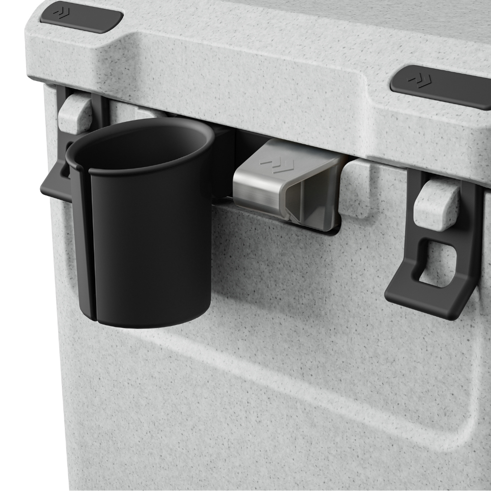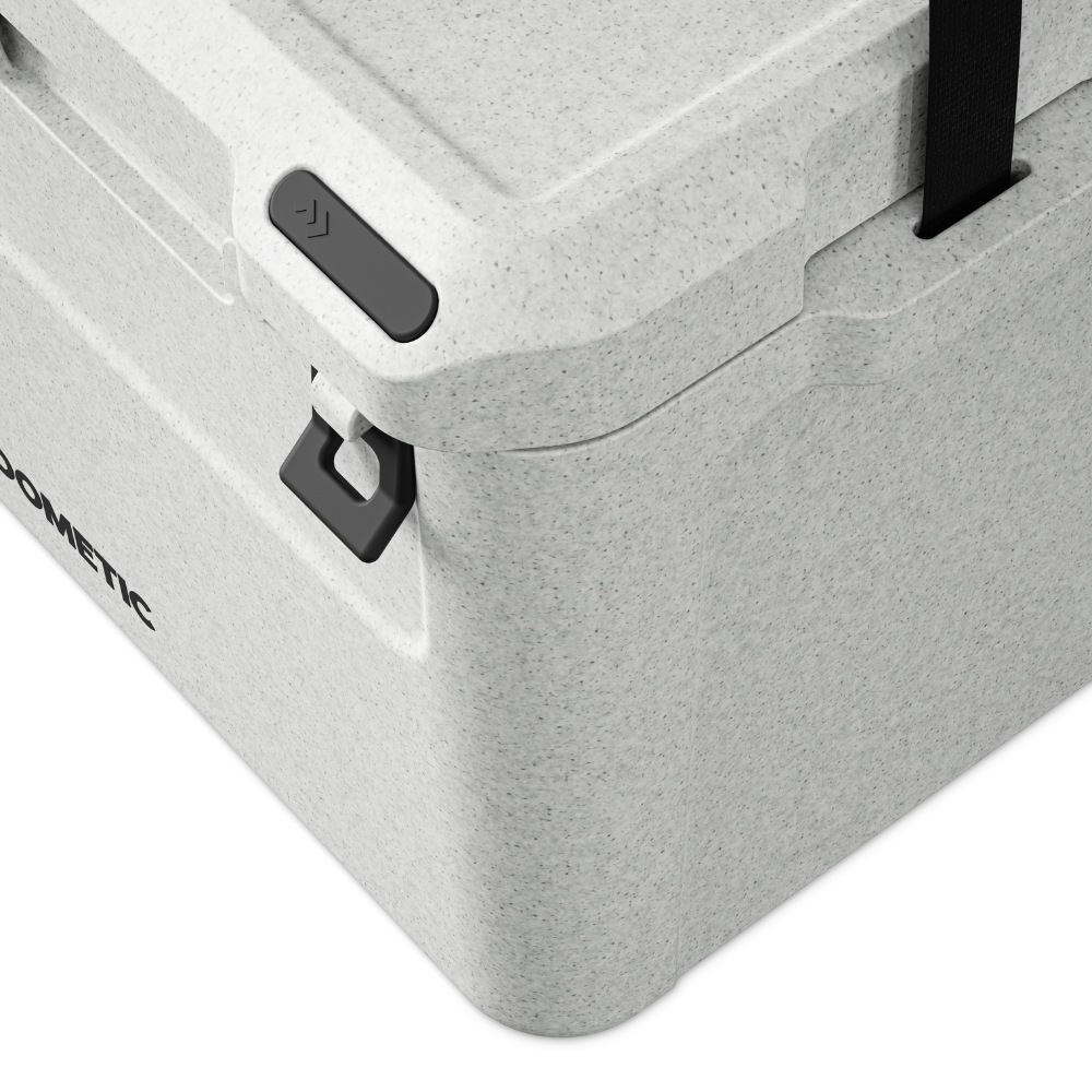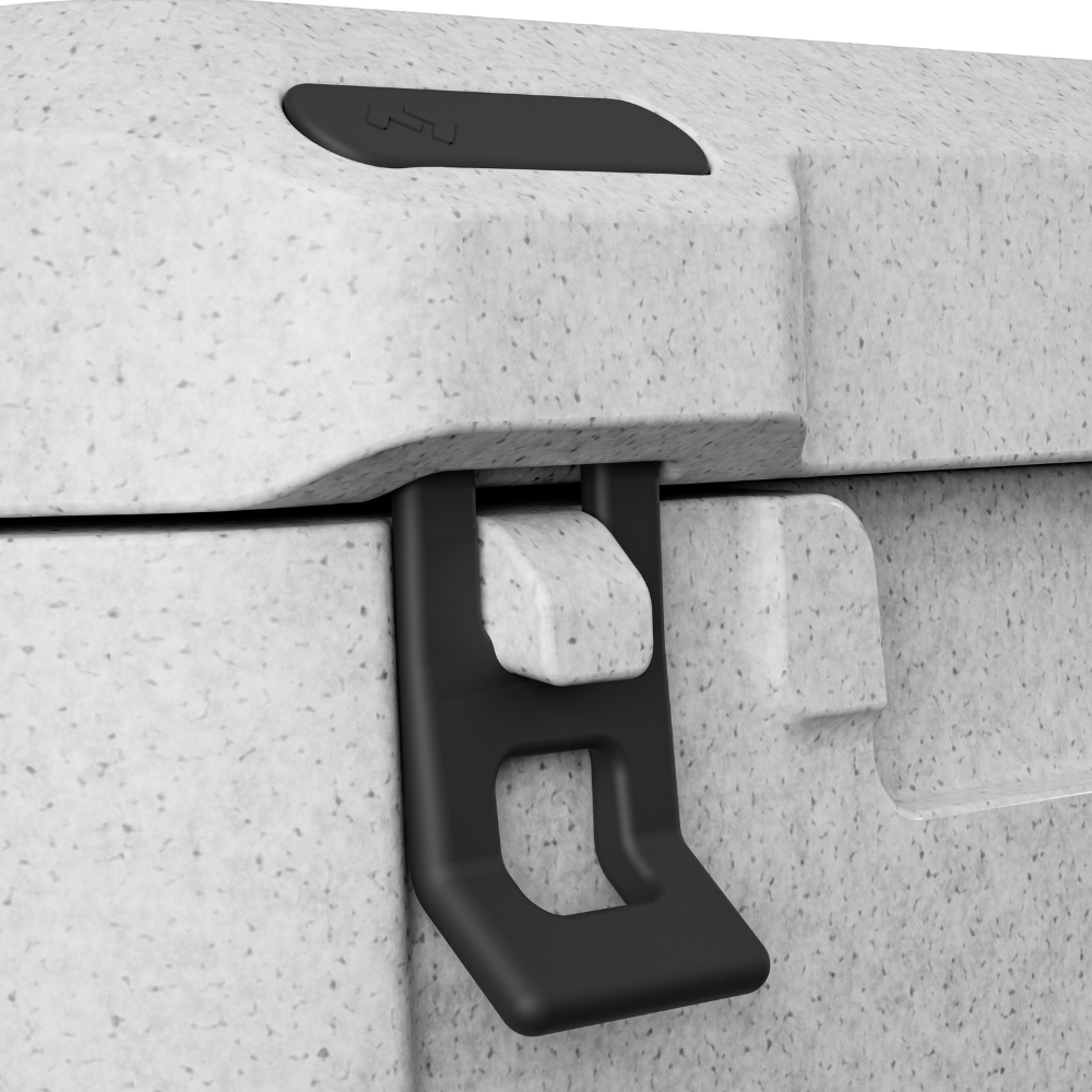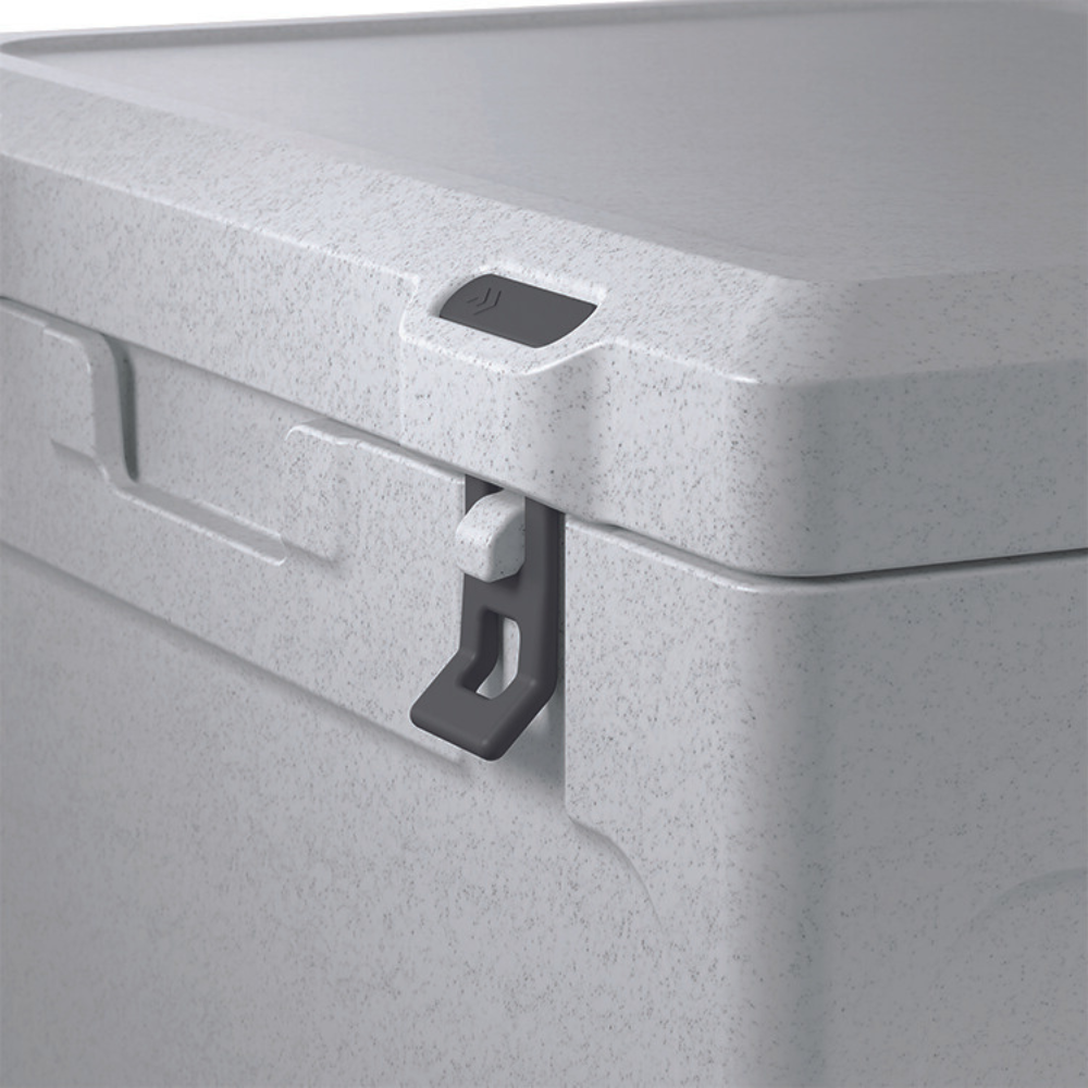 Thanks to the unique Labyrinth Seal Design, warm air stays out and cold air stays in, enhancing ice retention. It’s seamless, hygienic, and easy to clean – with clever drain recesses built into the base. Strong rubber latches, integrated hinges with stainless steel rods, and a heavy-duty carry strap make it durable and easy to transport.