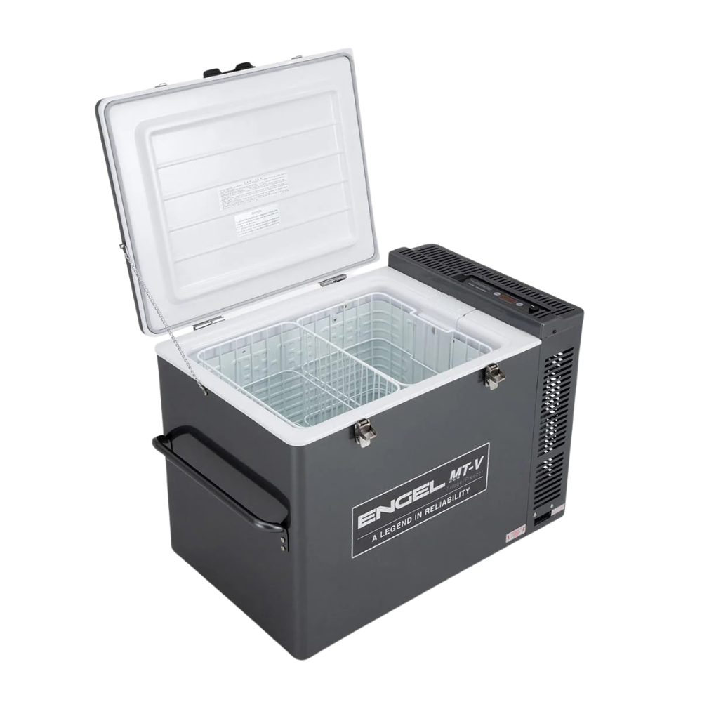 Like other Engel single-cabinet models, the MT-V80J can be operated as either an all-fridge or an all-freezer by setting your desired temperature. It’s well suited to running from a second battery with solar input, making it a practical option as a dedicated camp freezer on land or as additional freezer capacity on a boat. Power comes from Engel’s proven Sawafuji swing motor, delivering efficient operation with low maximum power consumption.