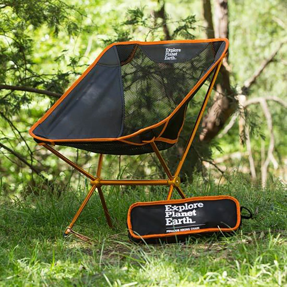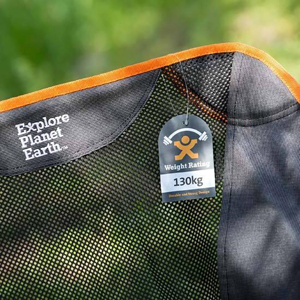 With a load capacity of 130kg, for a chair weighing less than 1kg, this is quite a feat. The frame of the Pegasus is manufactured with a 13mm Aluminium for strength and durability. The chair material itself is tough, designed with a strong 1200D Polyester. The sleek design also features Explore Planet Earth's 2-Tone Black and Orange colour scheme. This chair will be the talk of the camping site!