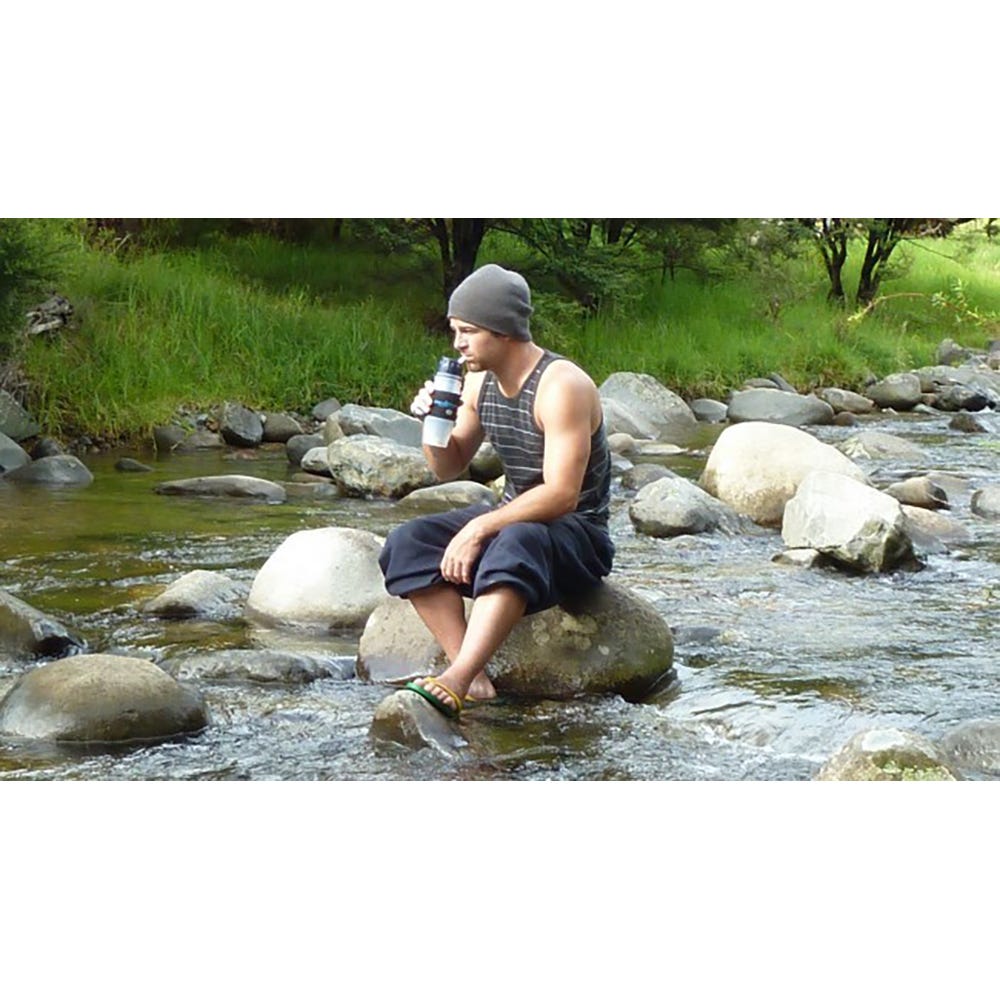 800ml water bottle suited for travelling that instantly filters water in undeveloped countries so it's safe to drink. Used by humanitarian organisations around the world, the water filter bottle is a proven lifesaver in tough situations.