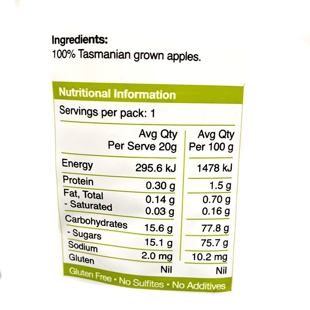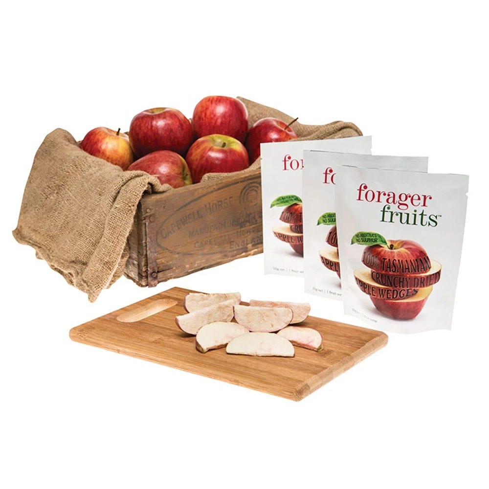 Freeze Dried Apple Wedges. If youรขโฌโขre looking for a 100% Tasmanian healthy, delicious snack then youรขโฌโขve come to the right place. Forager Fruits 100% Tasmanian Freeze Dried Apple Wedges are exactly what it says on the packet: 100% Apples, 100% from Tasmania, free from gluten, sulphur, added sugar, artificial/added colours or flavours, and free from water! They are simply full of taste and huge crunch!