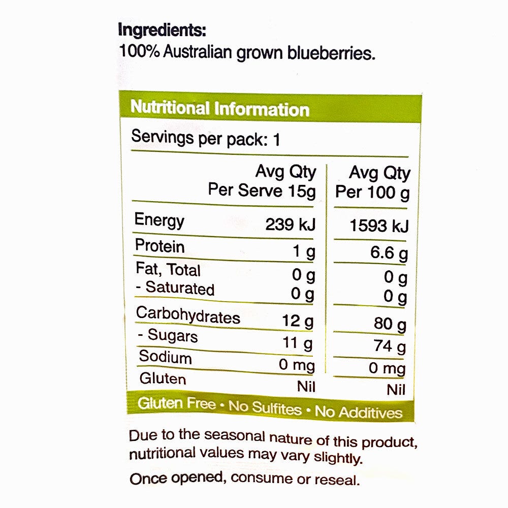 Each bag of Freeze Dried Blueberries contains the equivalent of 107 grams of fresh blueberries or 1 daily fruit serve. Delicious and nutritious! Wait until you experience the crunch factor!