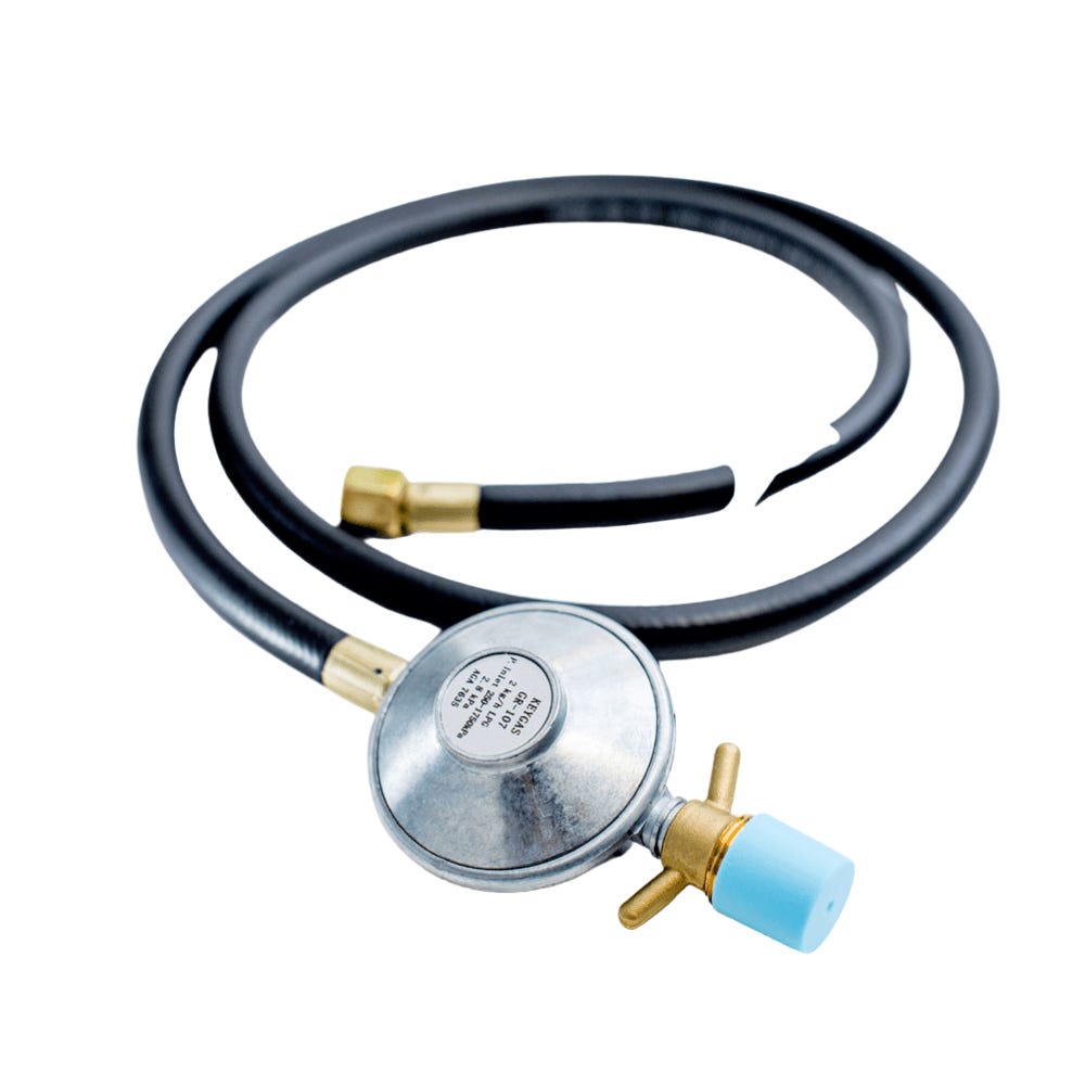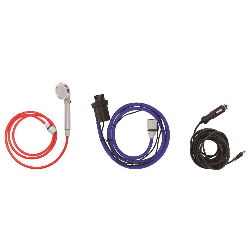 - Includes water heater, shower head, water hoses, filter and pump, and gas hose and regulator