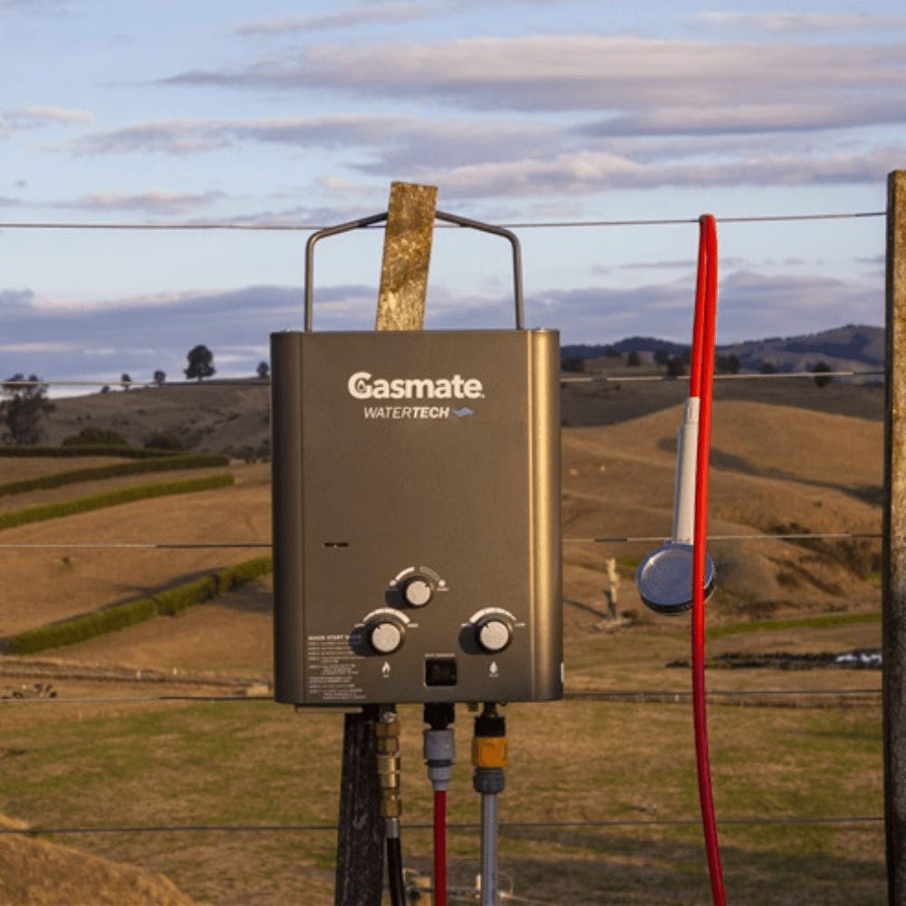 Camping is a lot of fun, but it can also mean you're a bit dirty at the end of the day, and now it's possible to have a wonderful hot shower thanks to the Gasmate Watertech hot water shower system.