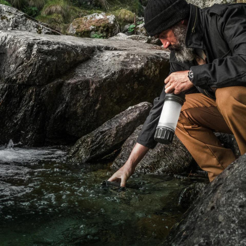 The GRAYL GEOPRESS Purifier has unrivalled ease, speed & convenience for travellers needing to filter their water. No other portable purifier rivals the speed, simplicity and effectiveness of GEOPRESS. In eight seconds, it makes 710 ml of safe, clean drinking water – anywhere in the world. Effective on all seven continents, you can tap into the world’s polluted water sources and safely drink from sketchy spigots, hotel sinks, murky rivers, wells or lakes. GEOPRESS removes global waterborne pathogens such as viruses, bacteria, and protozoan cysts while filtering pesticides, chemicals, heavy metals, and even microplastics from your water.