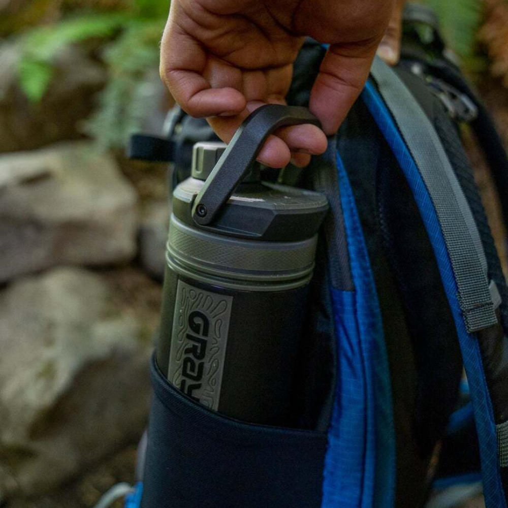The 16.9oz UltraPress Purifier Bottle fits into any pack pocket (or cup holder), requires zero setup, and makes safe, great tasting drinking water in a mere 10 seconds (3L/min). This is a compact, fun, and ridiculously easy to use bottle with an on-the-go filtration and purification for the hiker, backpacker, camper or traveler seeking fast-flow purified water for chugging, filling hydration reservoirs, or cooking.