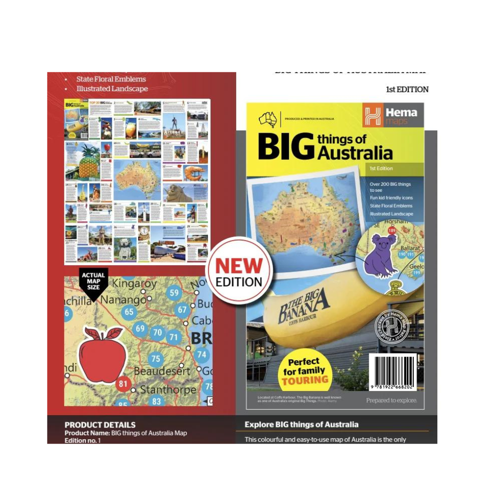 - Hema's top 30 'Big Things' prominently displayed on the map with detailed information on the reverse side
